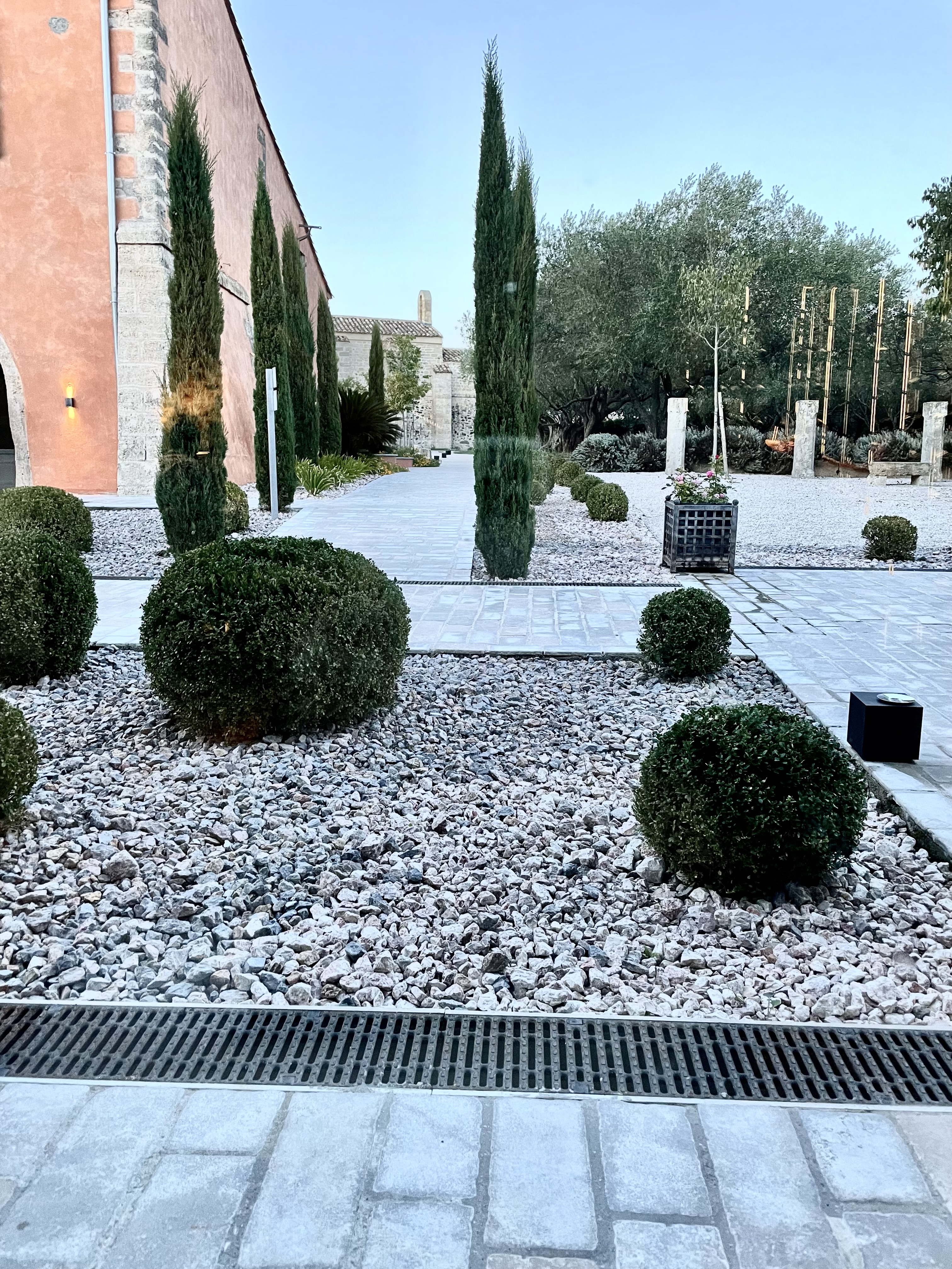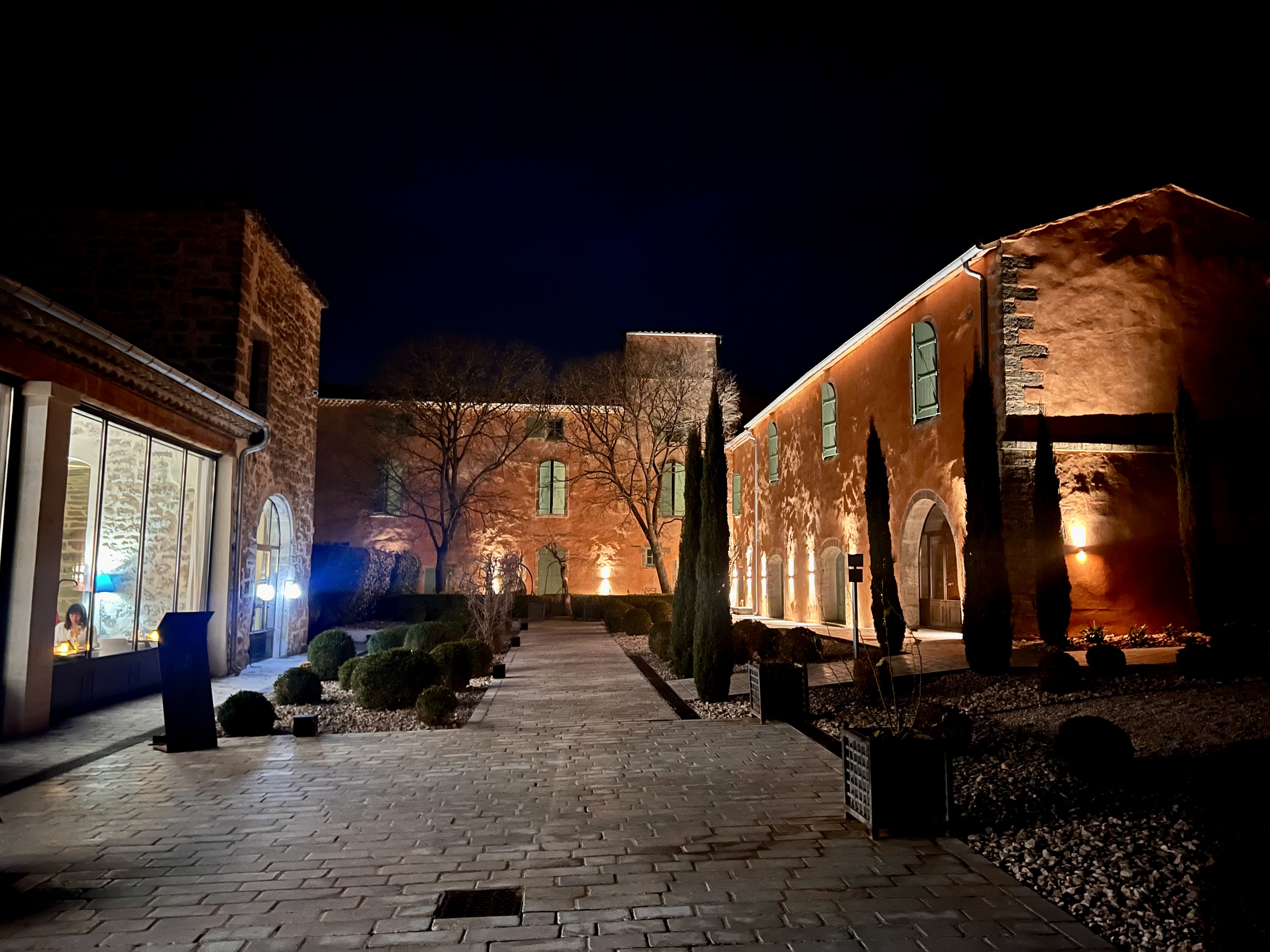 Lieu splendide, prieuré au milieu des vignes depuis 1154. Nous avons déjeuné dans ce restaurant restauré avec beaucoup de talent et de charme. Table simple sans nappe, en olivier, vaisselle magnifique décorée avec goût. Menu système Omakase, selon l'humeur du chef. Mises en bouche intelligentes avec progression dans les saveurs vraiment superbes! Entrée, pastilla revisitée avec betterave en lieu et place de feuille de brick (souvenir de sa grand mère). Très juste équilibre des goûts. Je trouve souvent la pastilla trop sucrée au restaurant, on sent le goût familial. 2ème plat, bouillabaisse adaptée, la mer dans une assiette... Parfait, grand plat. Main course, veau en 2 cuisson accompagné d'aubergines et olives. Snakées, en crème, roulées avec gelé d'agrumes et jus de veau corsé, une tuerie... Proposition de vin du sommelier, excellente, nous avons rendez vous avec le viticulteur semaine prochaine pour en acheter. Cuisson parfaitement maîtrisée, assaisonnements sans faute, nous avons découvert un restaurant qui ne devrait pas rester 1 macaron Michelin longtemps. Nous avons l'habitude de fréquenter ce type de restaurant et certains 2 macarons Michelin ont du souci à se faire , ou bien c'est le Michelin qui ne vient pas assez souvent au fond de l'Hérault. Nous aurions aimé croiser le chef afin de lui dire de vive voix, si c'était son second aujourd'hui, gardez le précieusement.