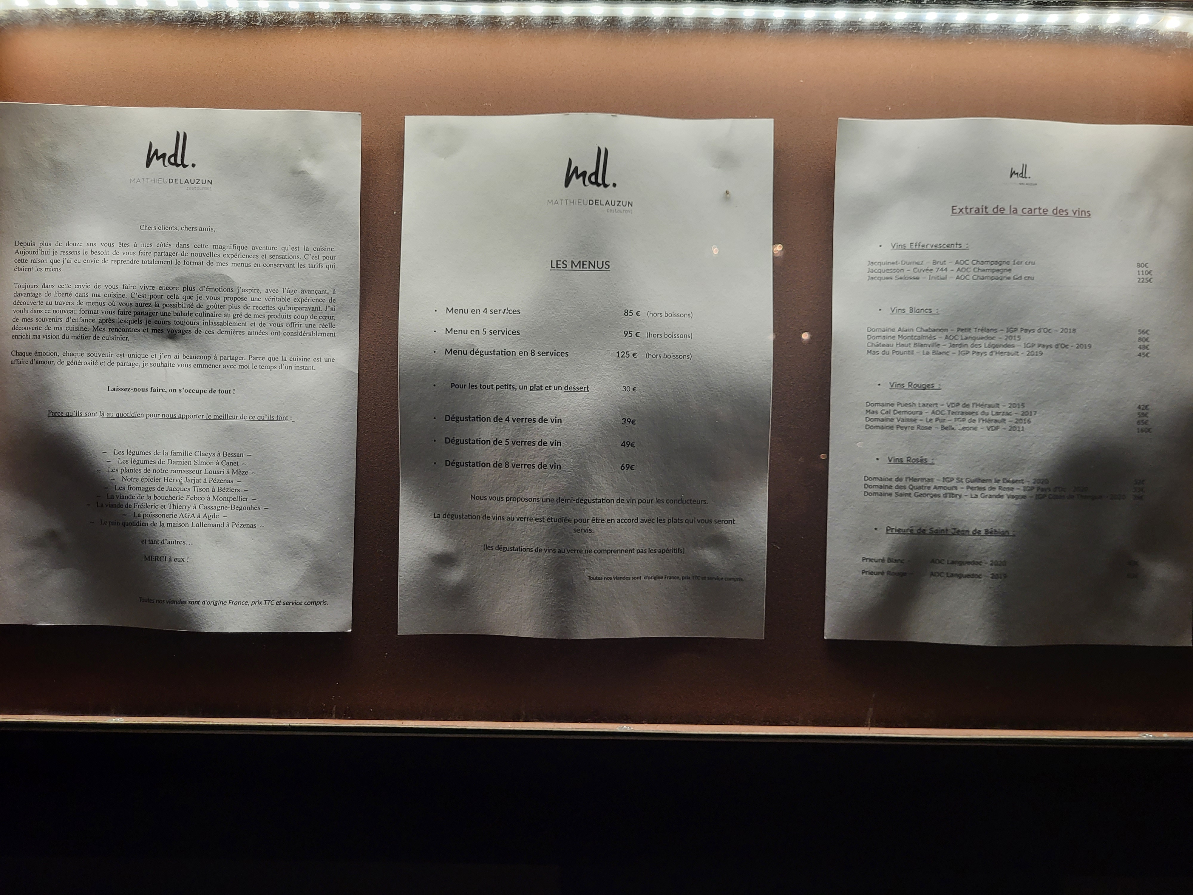 Tout était PARFAIT, le lieu, l'accueil, le service et le repas surprise : une MERVEILLE pour les yeux et les papilles autant dans l'assiette que dans le verre. Une superbe soirée. Nous reviendrons dès que possible.