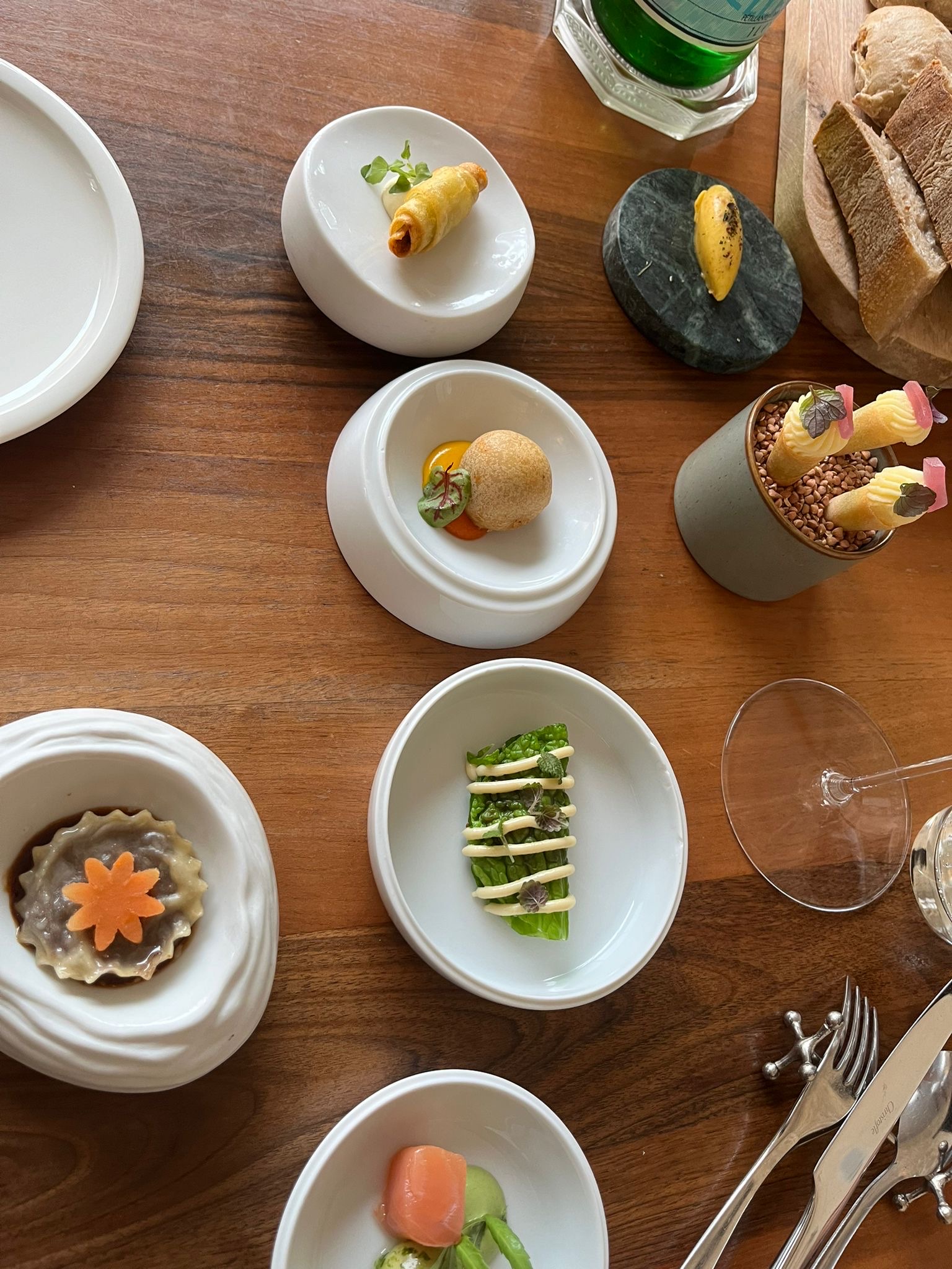Cadre magnifique. Présentation magnifique. Serveurs très bien....au niveau des papilles gustatives : manque de saveur pour les plats. Belles découvertes pour apéro citron japonais et divers amuse geule. Vin ordinaire sauf celui servi avec le dessert: découverte aussi. Bref, plus dans les yeux que dans le palais....