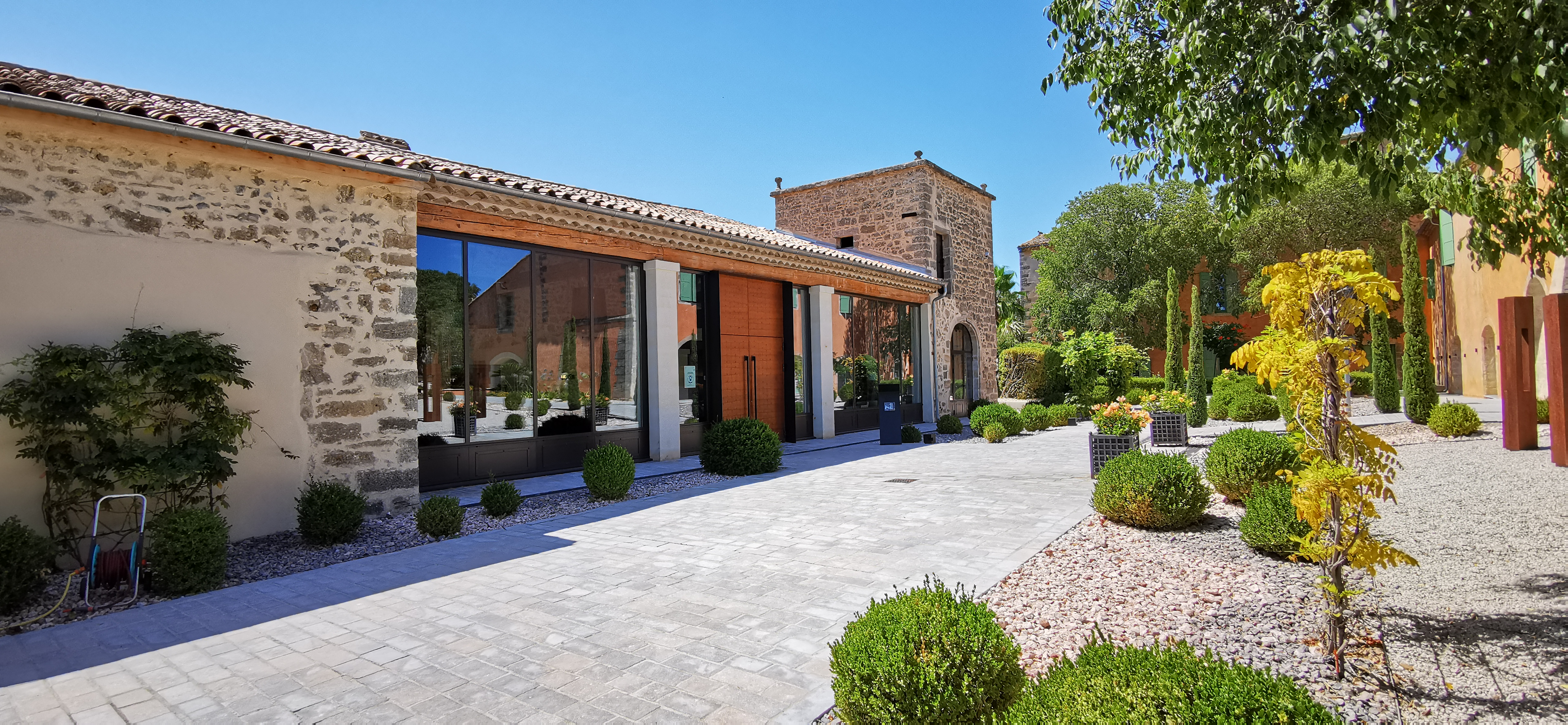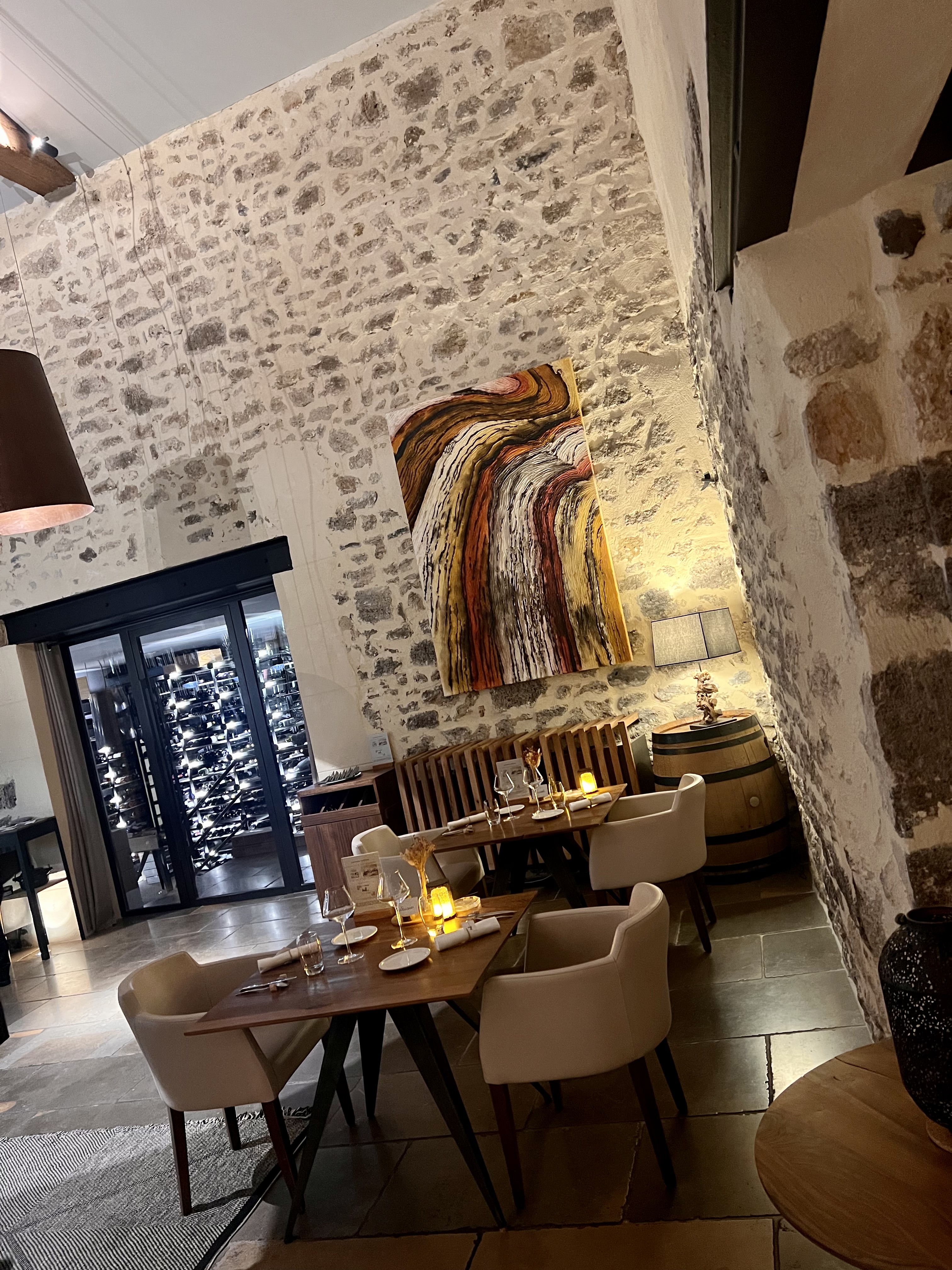 Cadre extérieur et intérieur très beaux. Production viticole locale à découvrir, dégustation culinaire novatrice pour notre plus grand plaisir. Malgré un manqué sur le dessert (poils de pinceau retrouvé sur une coque en sucre) nous reviendrons pour le plaisir des yeux et des papilles, et l'équipe de salle très agréable.