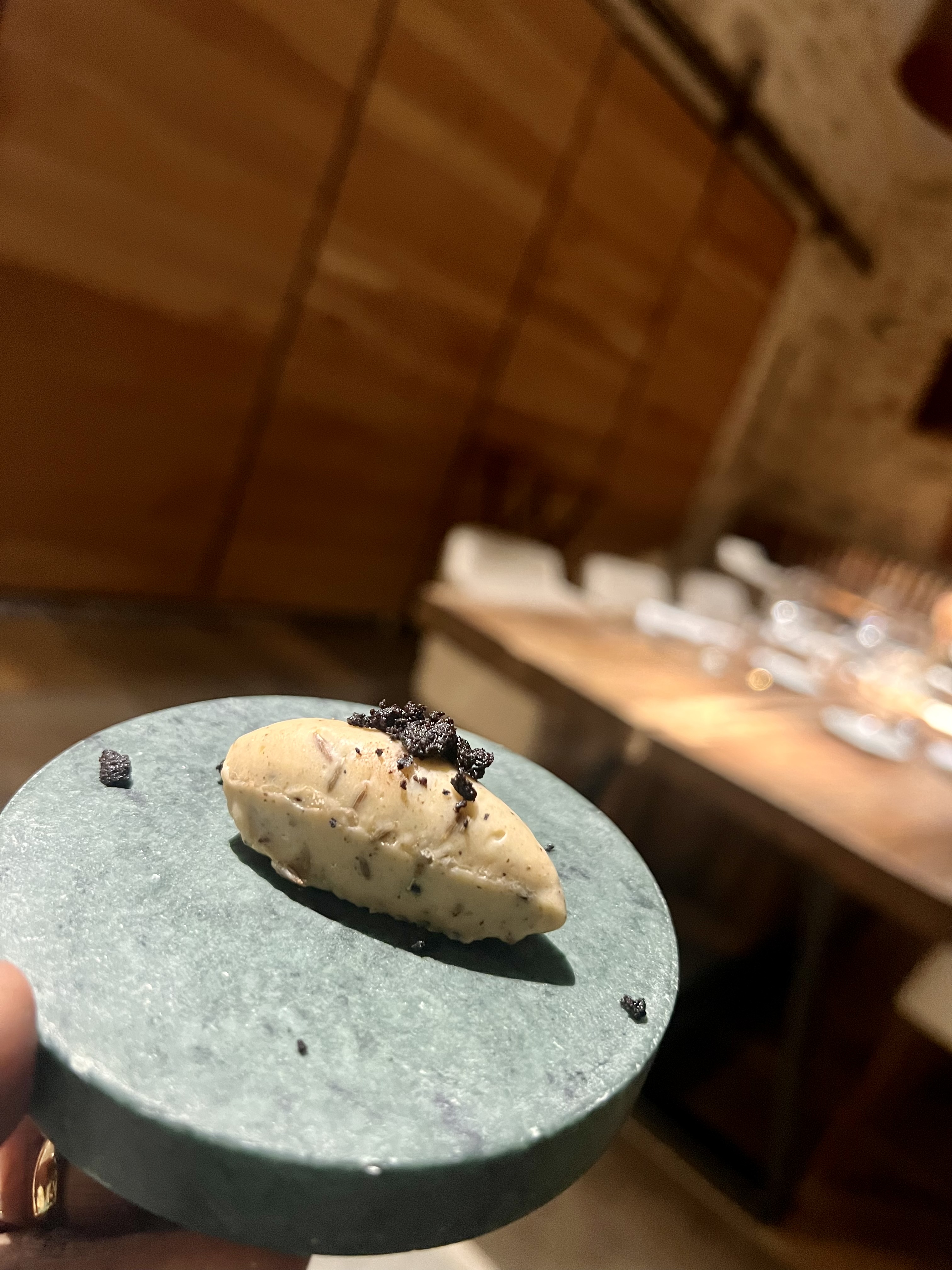 Nous avons passé une excellente soirée, le service était sans faute, le travail du sommelier excellent. J’ai aimé tous les plats, les produits sont très bien préparés. La cuisine du chef est puissante, tranchée et avec beaucoup d’équilibre. et pour couronner le tout la salle est sublime , ce mélange de vieilles pierres et de contemporain est réussi Nous fêtions un anniversaire ils ont donc préparé un petite attention pour cette occasion, merci encore !