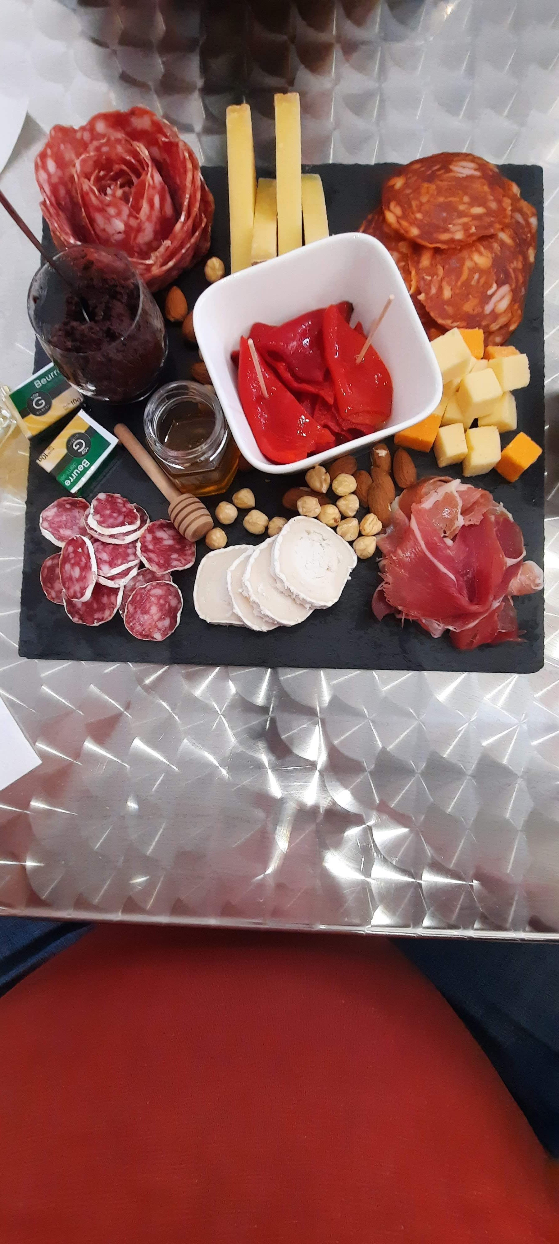 Nous étions 7 samedi soir et nous avons choisi des planches mère et fille. Copieux et variés. Prix tres correct. Accueil chaleureux, très souriante, à l'écoute du client. Pichet de vin rouge et blanc très bons. Nous y retournerons volontiers. Merci à toutes les deux et bonne continuation