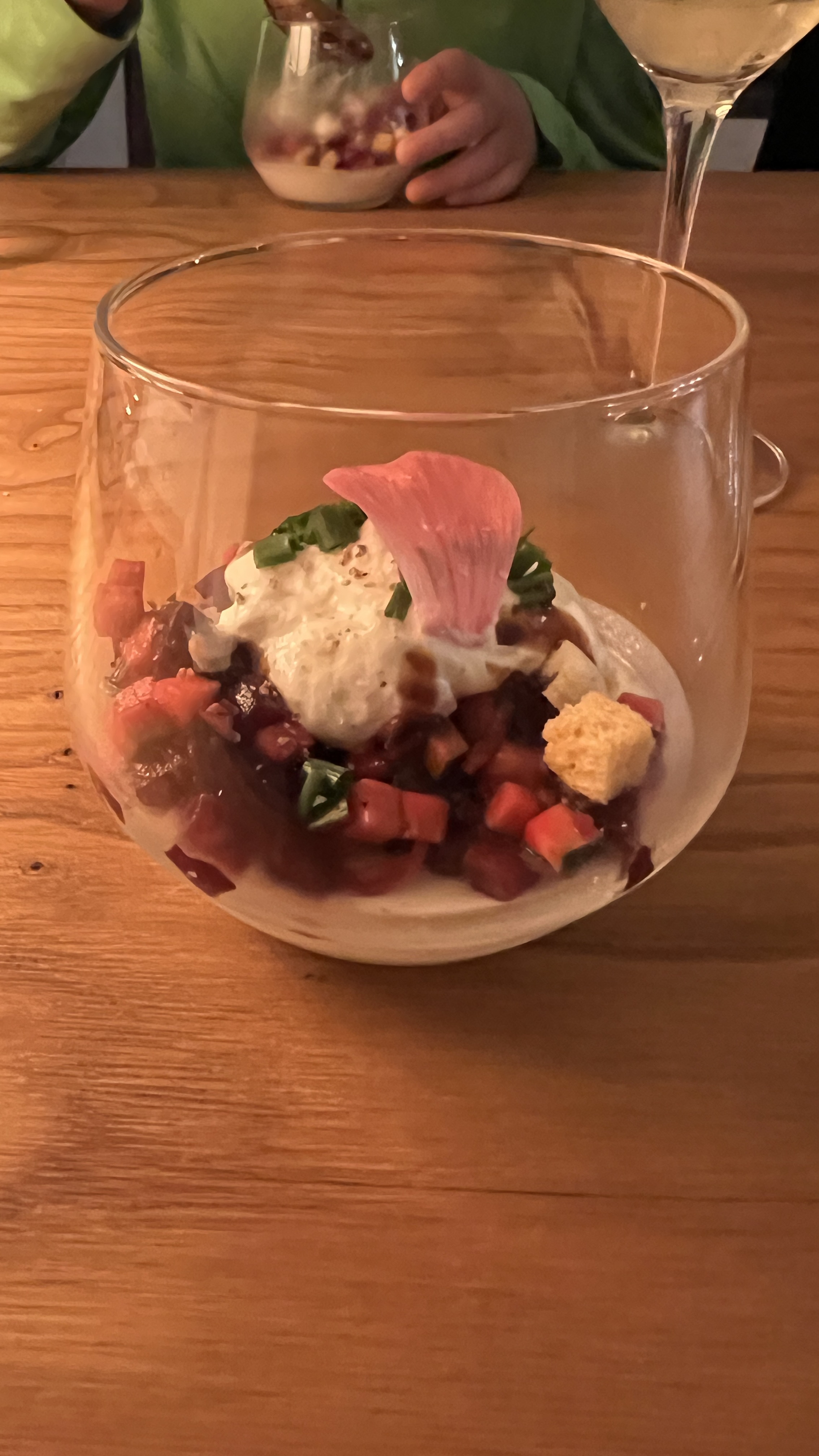 En résumé : volontiers à nouveau à tout moment ! Une expérience formidable. Au début, vous pensez que l'adresse est fausse, une rue cahoteuse, des nids-de-poule, puis une enseigne discrète indiquant le restaurant apparaît. Selon leurs propres déclarations, le chef et sa compagne (supposée) ont ouvert le restaurant il y a 7 mois. Un accueil sympathique après le stationnement. Nous sommes les premiers convives aux 4 tables (3x4 et 1x 8-10 places). Le menu tient sur une seule page, y compris la sélection de boissons (même si beaucoup ne figurent pas au menu). Nous avons choisi l'intérieur de la maison rénovée. En plus de nombreux livres de cuisine et de meubles rétro (certains disposés de manière sophistiquée), vous trouverez une sélection de whiskies single malt et de nombreuses bouteilles de gin (et de vin). Nous avons opté pour le « forfait sans souci Susi ». Donc menu surprise à 5 plats, 5 plats avec vins sélectionnés et 5 plats de boissons non alcoolisées pour les enfants. Dans l’ensemble, j’avais l’impression d’être dans le film de Disney « Ratatouille ». De nombreux plats ne deviennent visibles que lorsque tous les ingrédients sont rassemblés sur la cuillère/fourchette. Un régal pour les yeux et les sens. Que puis-je dire : pour un essai et sur la base de l'avis Google avec une note de 5 points, je suis heureux de l'accepter. Un très bon petit restaurant, fortement recommandé. Poursuivre!