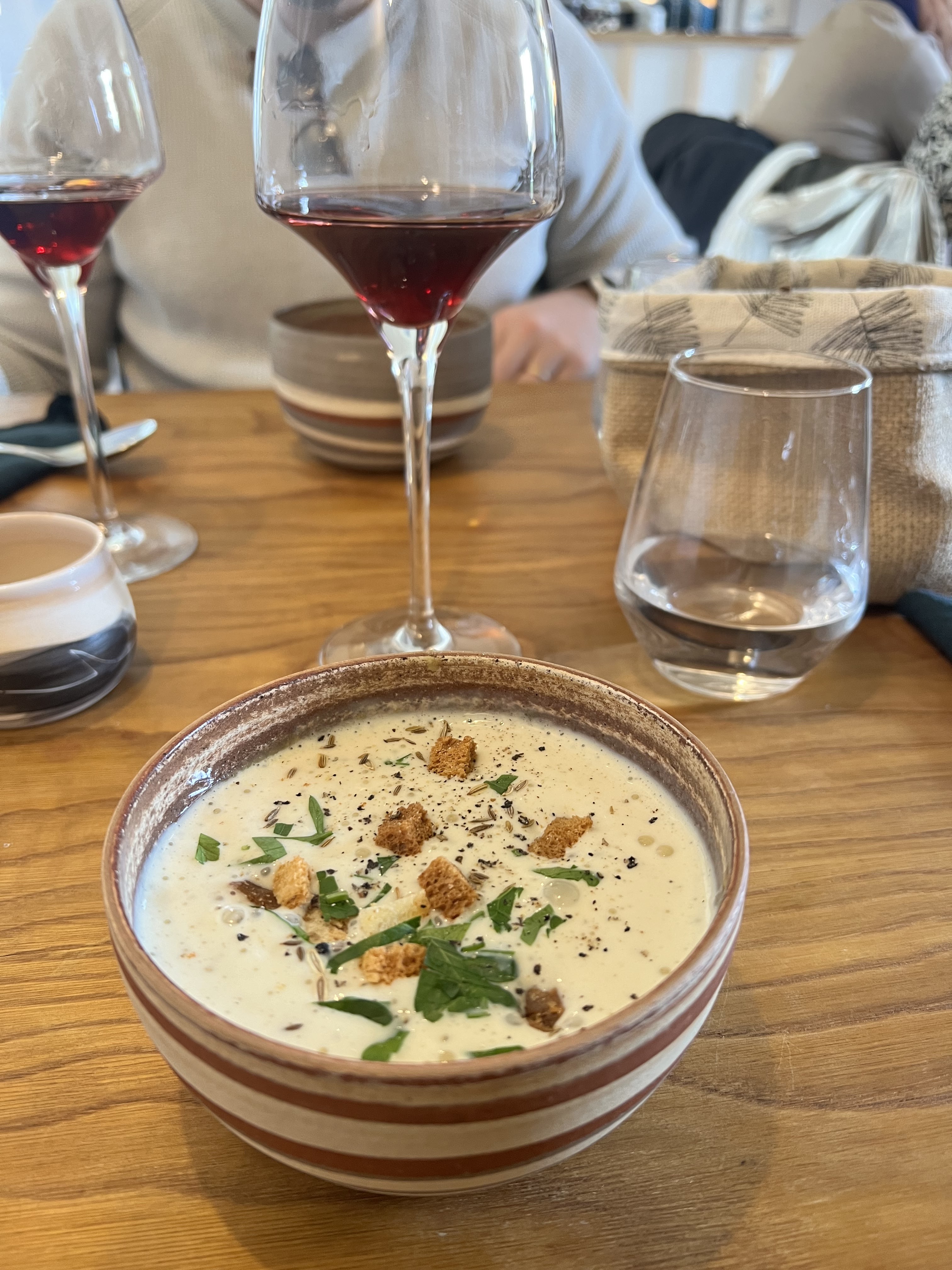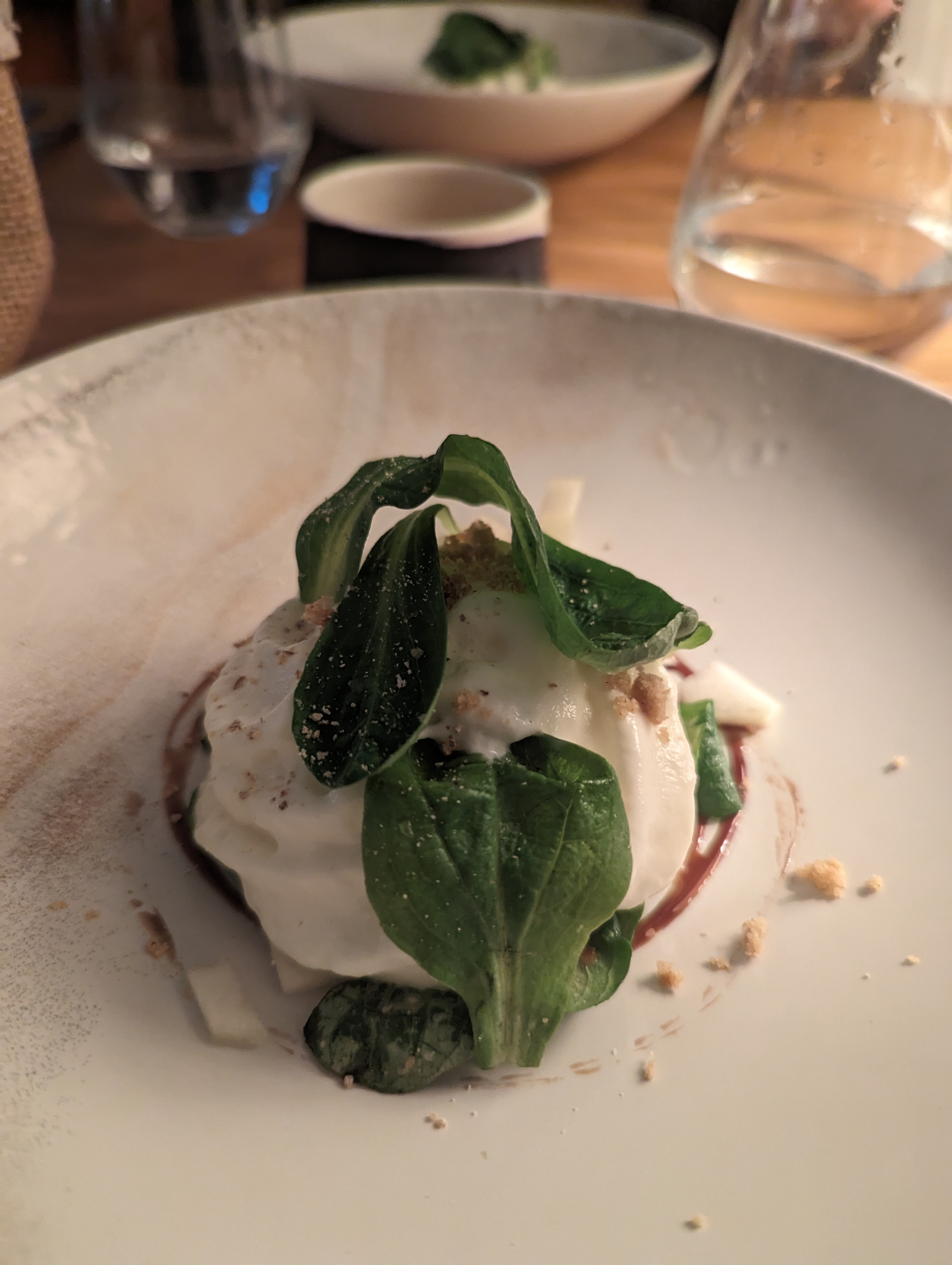 Ouah. Je ne trouve toujours pas les mots pour un repas aussi délicieux et fabuleux ! Le menu de cinq plats était parfait, montrant une variété d'ingrédients de saison et locaux (sans être trop copieux - comme les menus fixes peuvent parfois l'être) et les accords mets et vins qui l'accompagnaient (beaucoup naturels, biodynamiques ou biologiques) étaient fantastiques - et la bonne taille pour conduire. à la maison après ! Ce qui est peut-être encore plus impressionnant, c'est le niveau de détail et les merveilleuses saveurs, ainsi que le fait que tout cela soit créé par un seul homme dans la cuisine adjacente. Honnêtement, cela ressemble à un repas vraiment sur mesure et exceptionnel. Le restaurant lui-même peut accueillir jusqu'à une douzaine de personnes, ce qui crée une expérience à la fois intime et chaleureuse. L'espace est moderne et constitue le cadre idéal pour le menu. S'il vous plaît, s'il vous plaît, faites-en votre prochaine visite pour le dîner ou le déjeuner, vous ne serez pas déçu ! En fait, comme moi, vous aurez probablement envie d’en parler à tout le monde et de revenir !