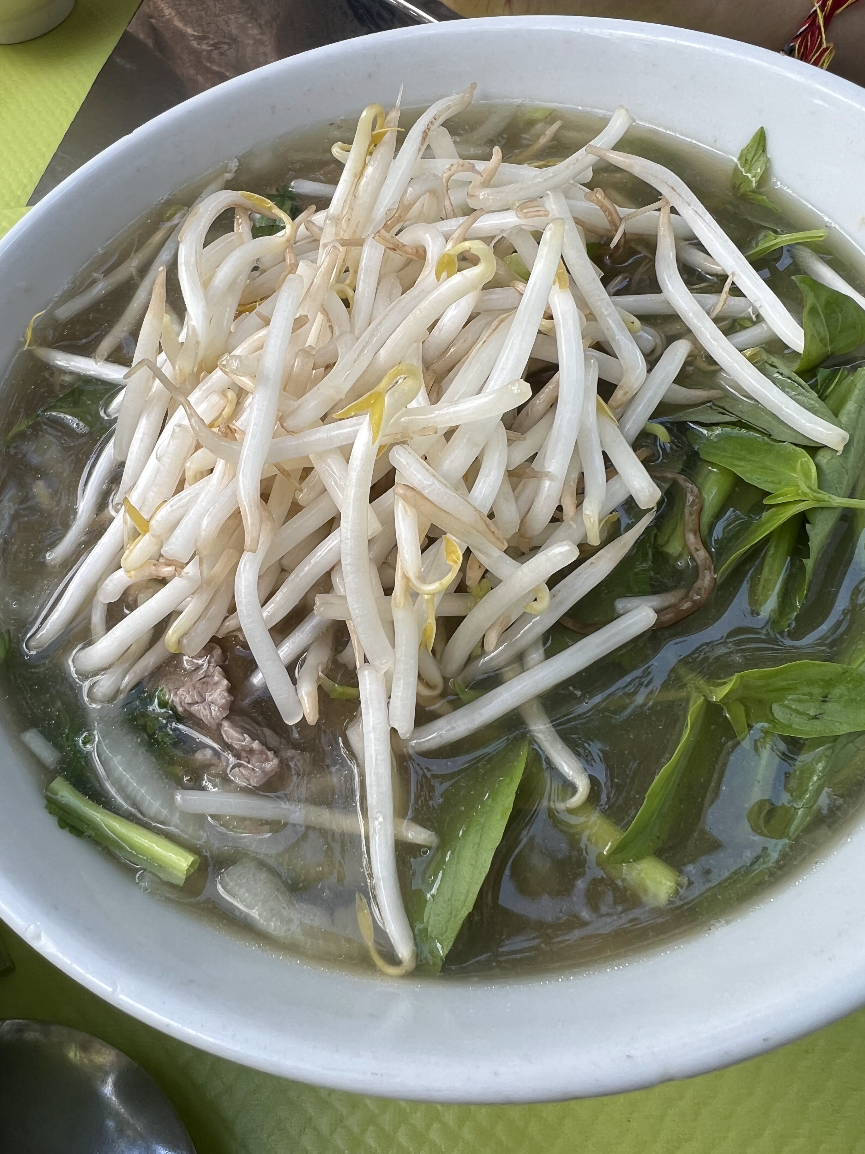 Nouilles de riz propres et légères. Pas des nouilles plates, mais des nouilles fines (les nouilles couramment utilisées dans les restaurants pho aux États-Unis et au Canada). La viande et les légumes (germes de soja, basilic) sont frais. Un autre avantage de ce restaurant est qu'il propose de nombreux autres plats en plus des nouilles de riz. Prêt à revenir.