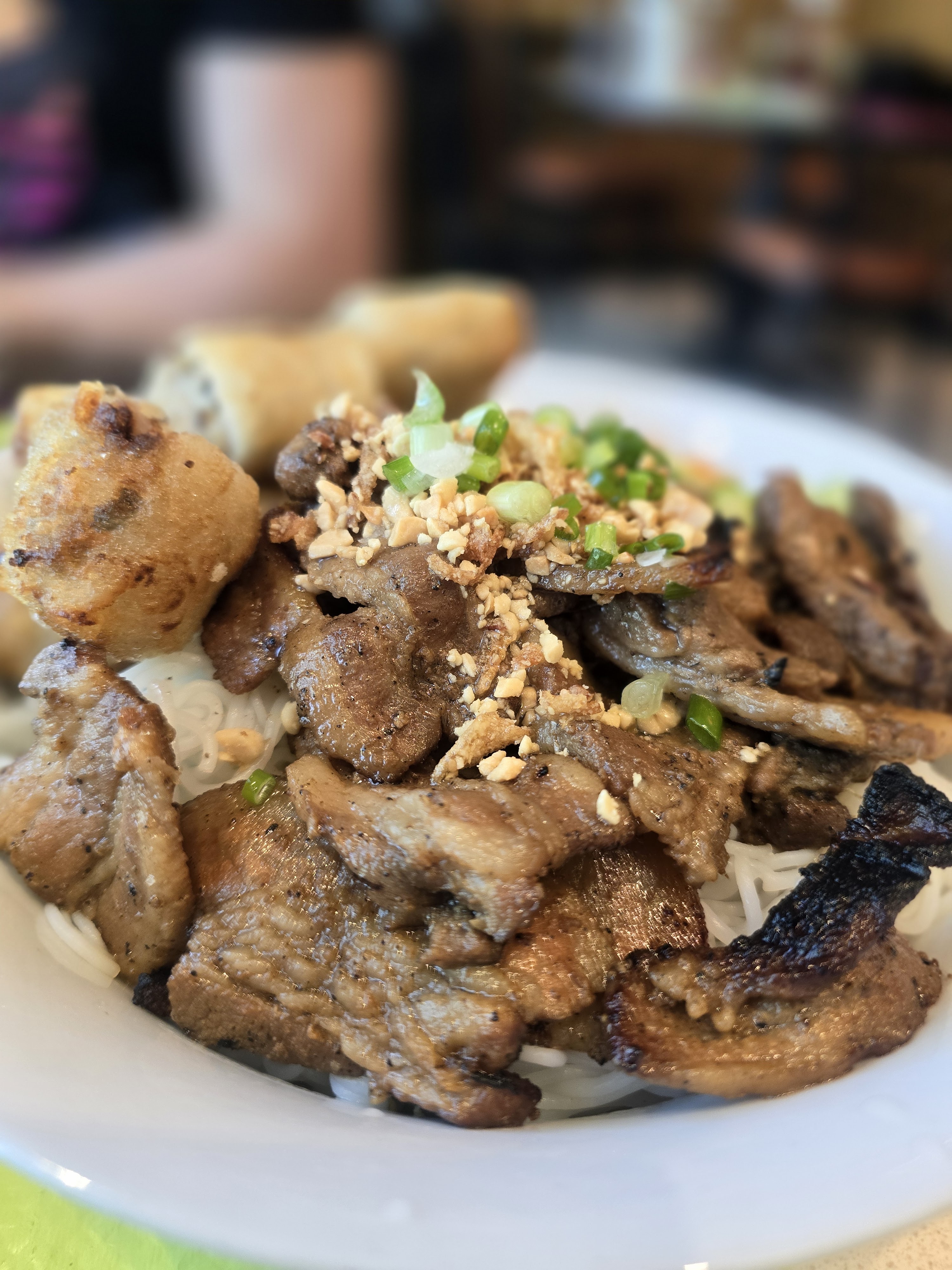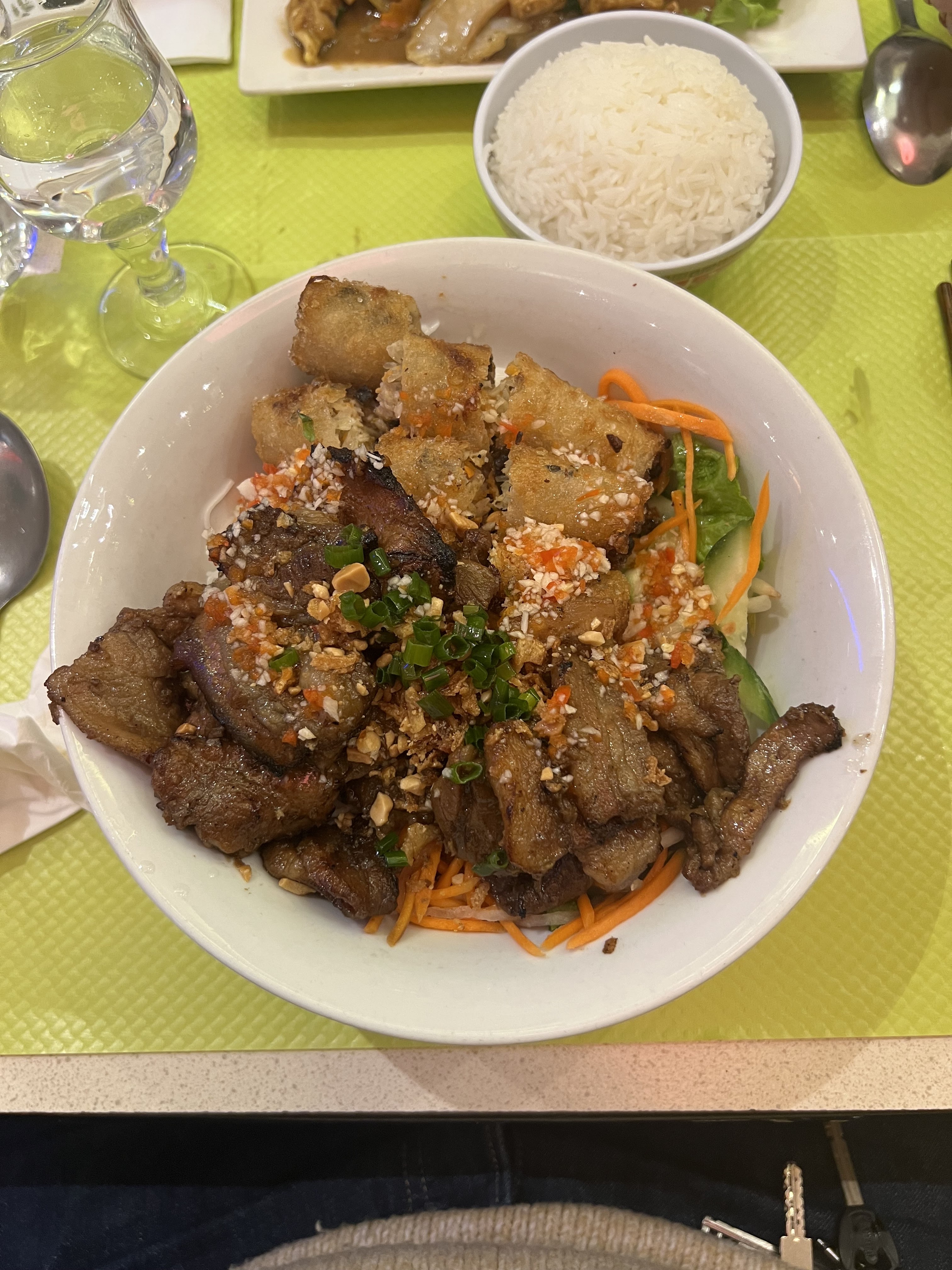 C'est la première fois que j'ai essayé ce restaurant et il n'a pas déçu ! La portion est énorme, donc c'est vraiment parfait ! J'adore mon porc grillé avec des vermicelles pendant que mon mari a eu le bobun. 👍 Je reviendrais certainement pour plus :)