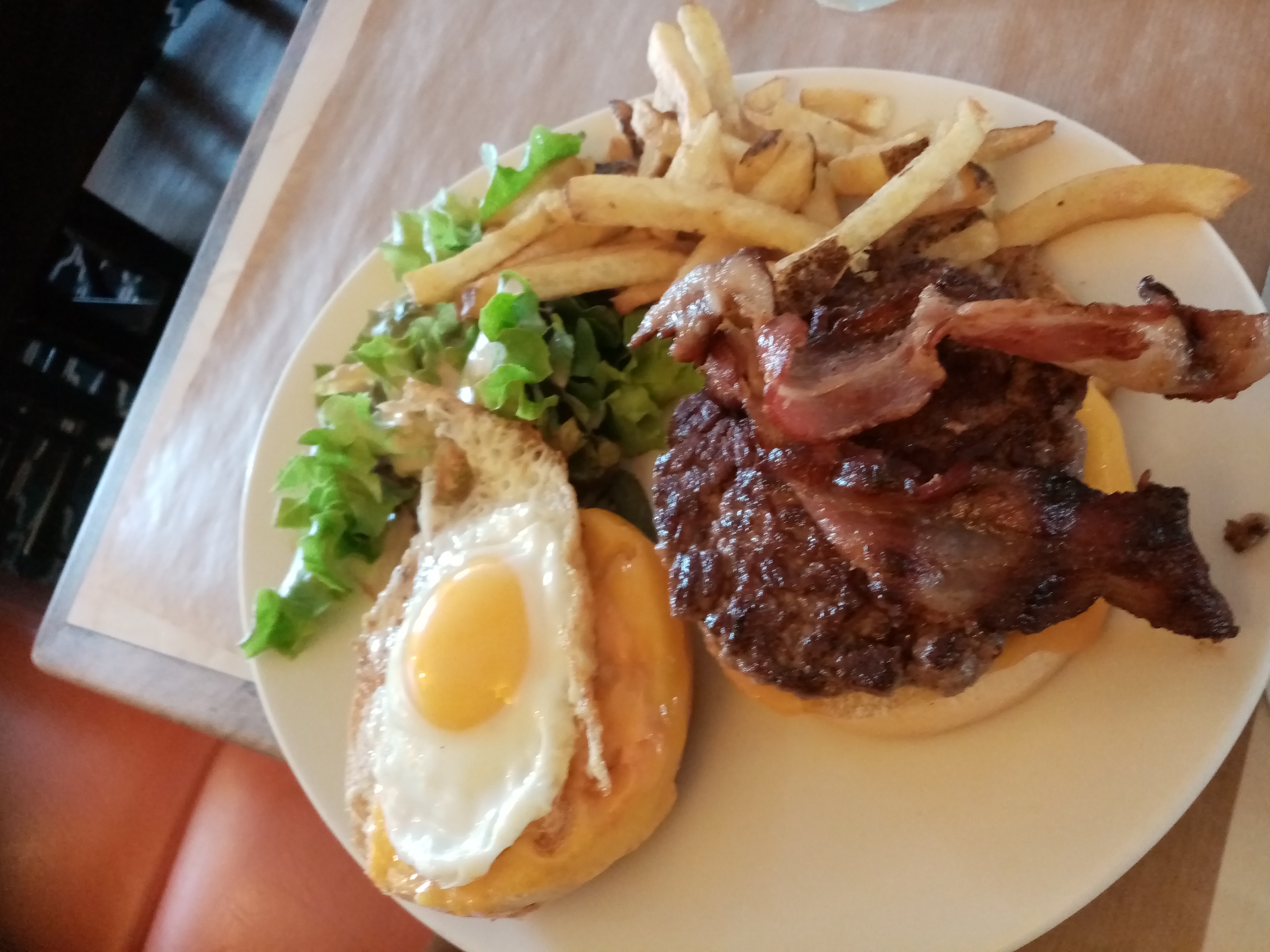 Brunch au bacon tres bon. Assiete copieuse, serveur aimable