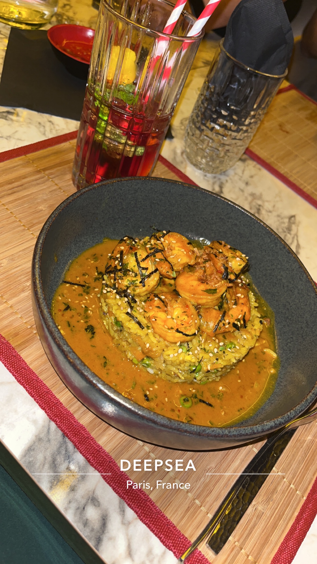 Nous avons passé un très bon moment dans ce lieu , un superbe accueil, une ambiance très chaleureuse ! Les plats étaient fins et délicieux une très belle découverte ce mélange Afro-asiat’ de même pour la boisson a base d’hibiscus. (entrée, plat et dessert pour 30€). Cette offre est idéale pour goûter à l’expérience du Deepsea a un prix raisonnable.