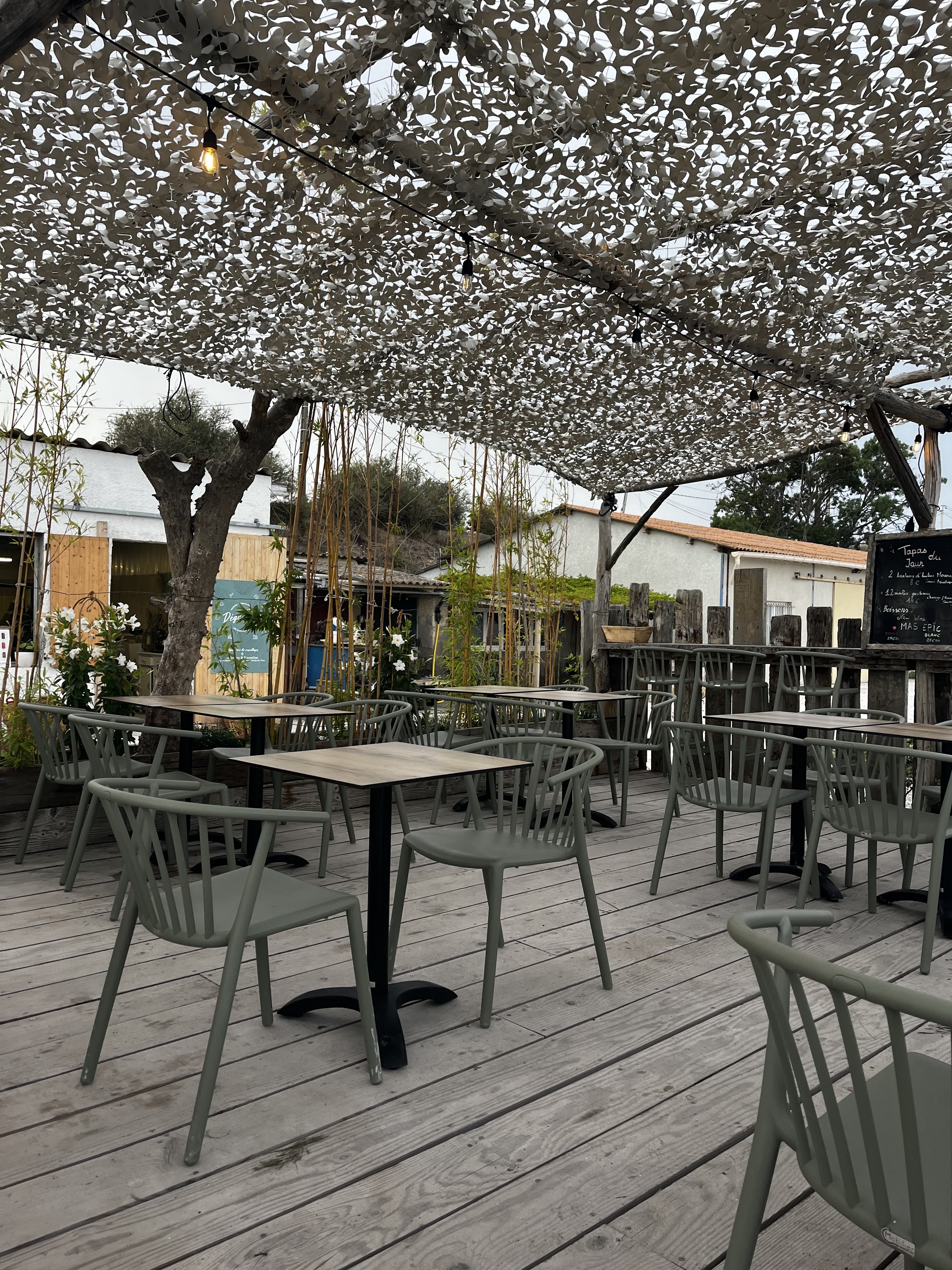 Lieu magique au bord de l’étang deThau. Merci pour l’accueil coquillages excellents. Je recommande