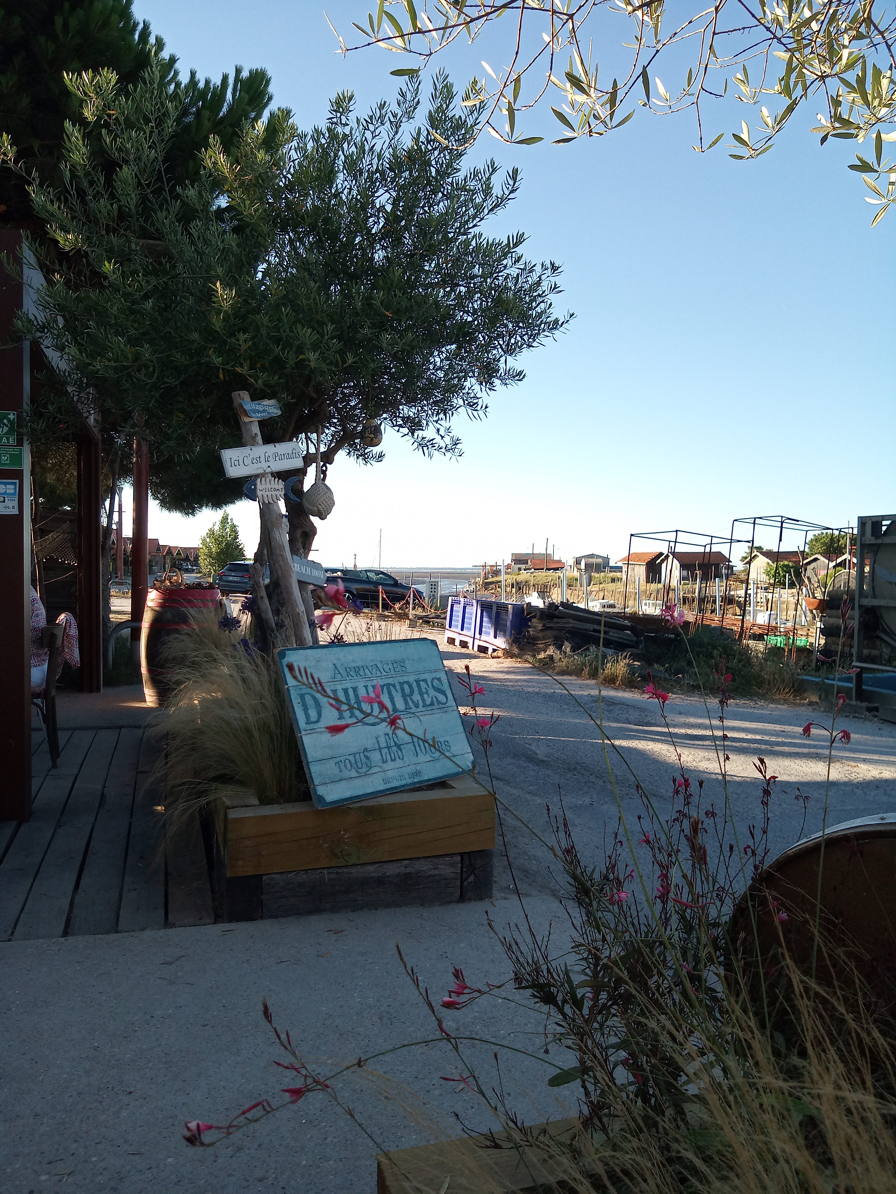 Très beau cadre pour manger des huîtres, des boulots et des crevettes avec un verre de blanc.