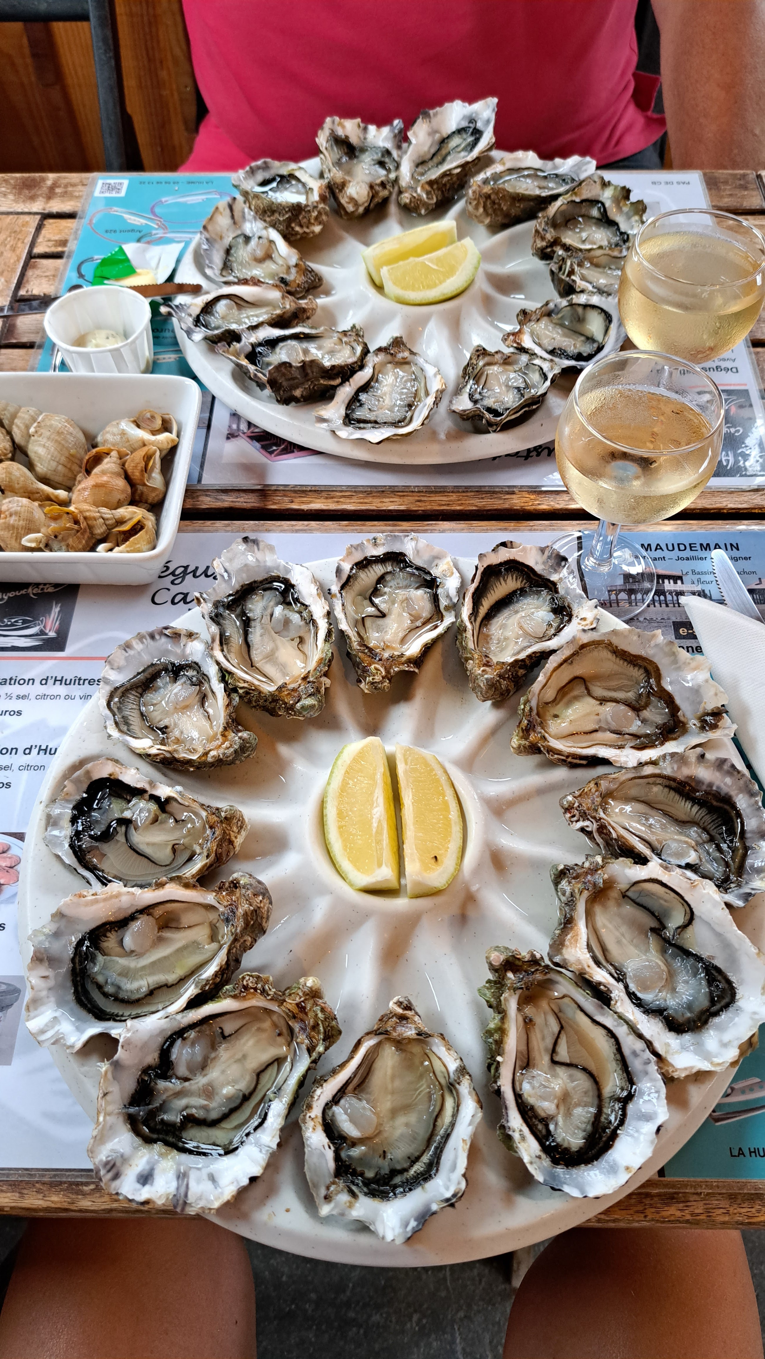 Bonnes huîtres N°3 et N°2 avec un ou deux verres de vin blanc le tout en terrasse ensoleillée !