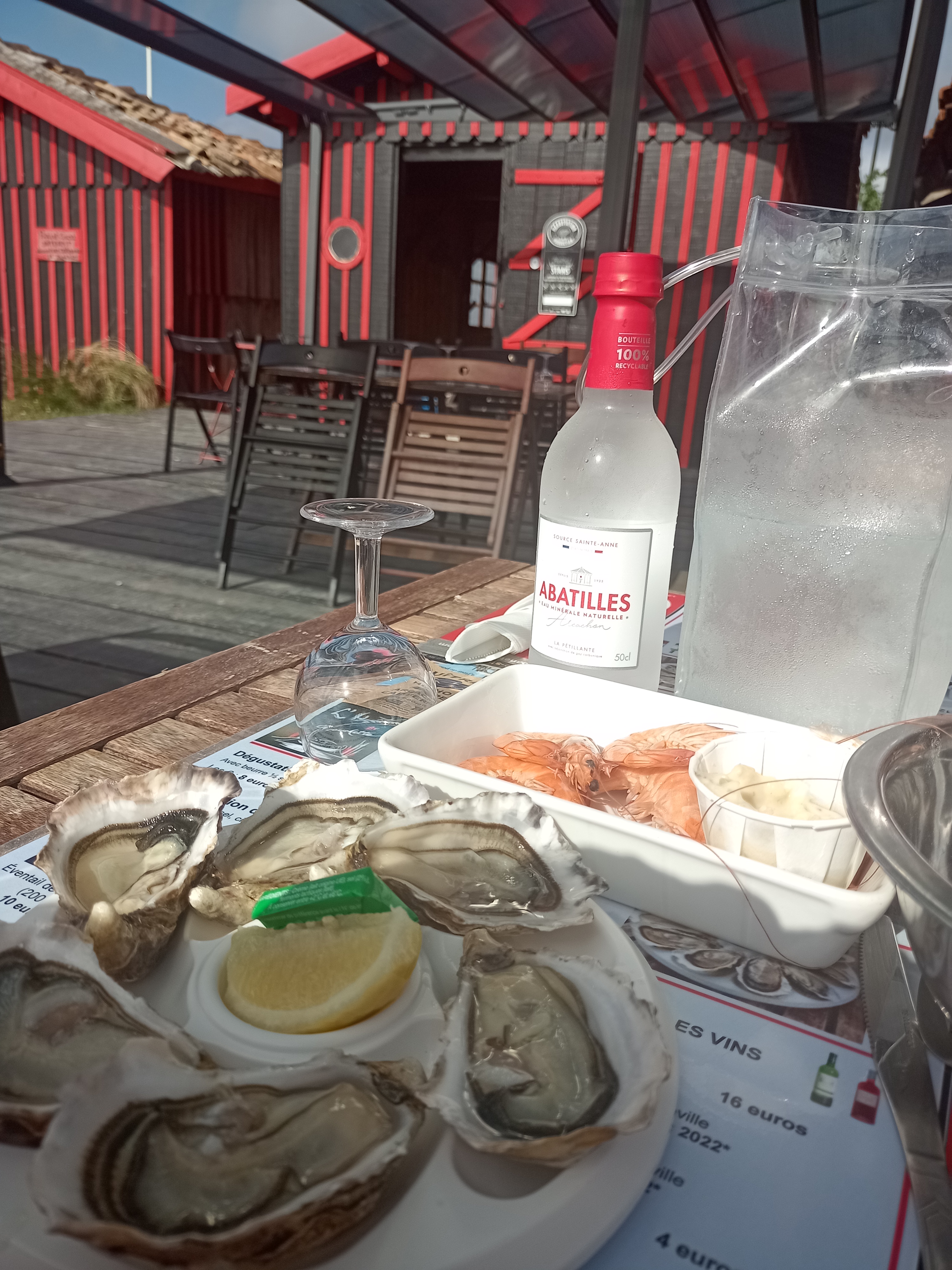 Nous avons passé une excellente soirée à déguster sur la terrasse, des huîtres de la production, des bulots et crevettes, arrosés de vin blanc Service parfait orchestré par SoSso Établissement que je recommande sans modération.