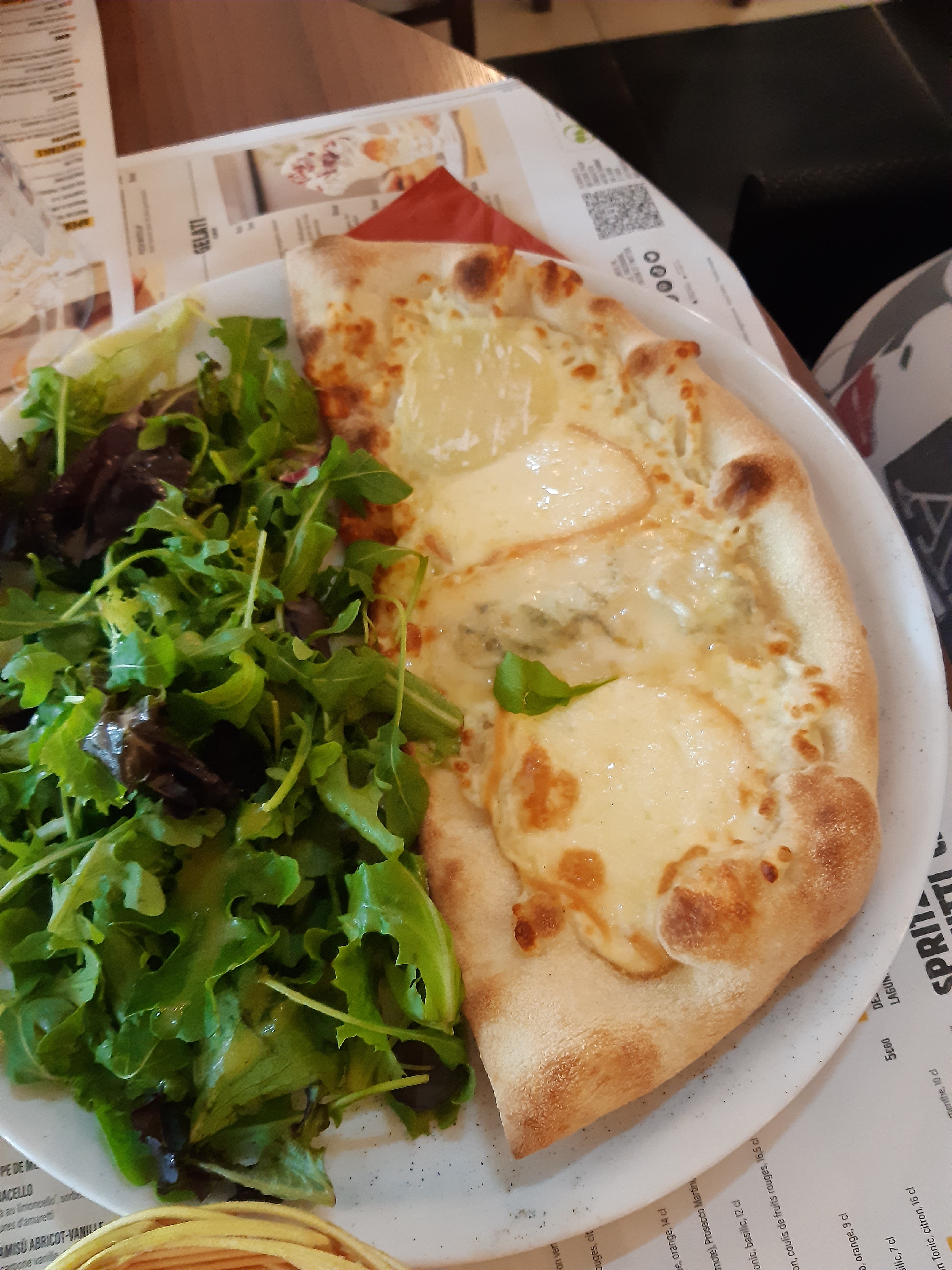 On dit toujours , si les toilettes sont sales , le restaurant n’est pas top … comme de fait , toilettes sales et obligé de demander du papier wc… concernant le service , la serveuse prend des notes pour le plat et les boissons mais pas pour le désert donc elle en oublie la moitié…j’avais demandé une pizzeta ( demie pizza avec salade) spécial pizzaiolo, on me sert une pizza entière spéciale pizzaiolo avec salade non assaisonnée dans un bol , le prix était différent mais j’ai dû payer ce que je n’avais pas demandé… pâte à pizza trop cuite , trop dure à couper j’ai terminé avec les mains… pour le désert et plus particulièrement les boules de glace , pas de saveur pomme , j’ai donc changé de saveur et failli ne pas avoir de cuillère… Bref très déçu, je ne recommande pas malheureusement.