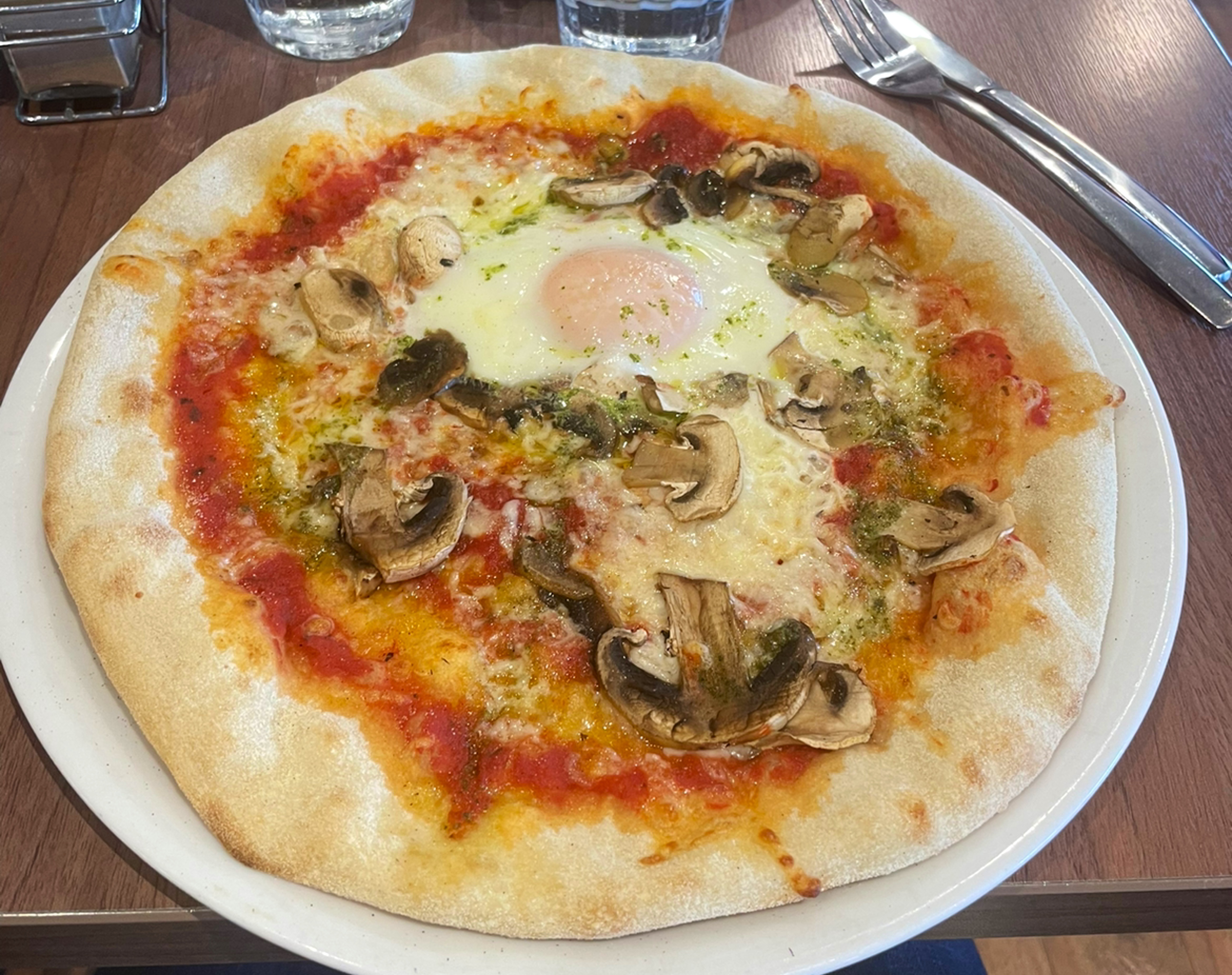 Comment dire. J'ai dû prendre la pizza bas de gamme qui était insipide, même le jambon avait fugué avec la sauce tomate 😁. le serveur subit son job en claquant le pot de parmesan sur la table. C'est pas foufou, un burger aurait pu être de la gastronomie à côté. On a mangé c'est déjà ça.😂