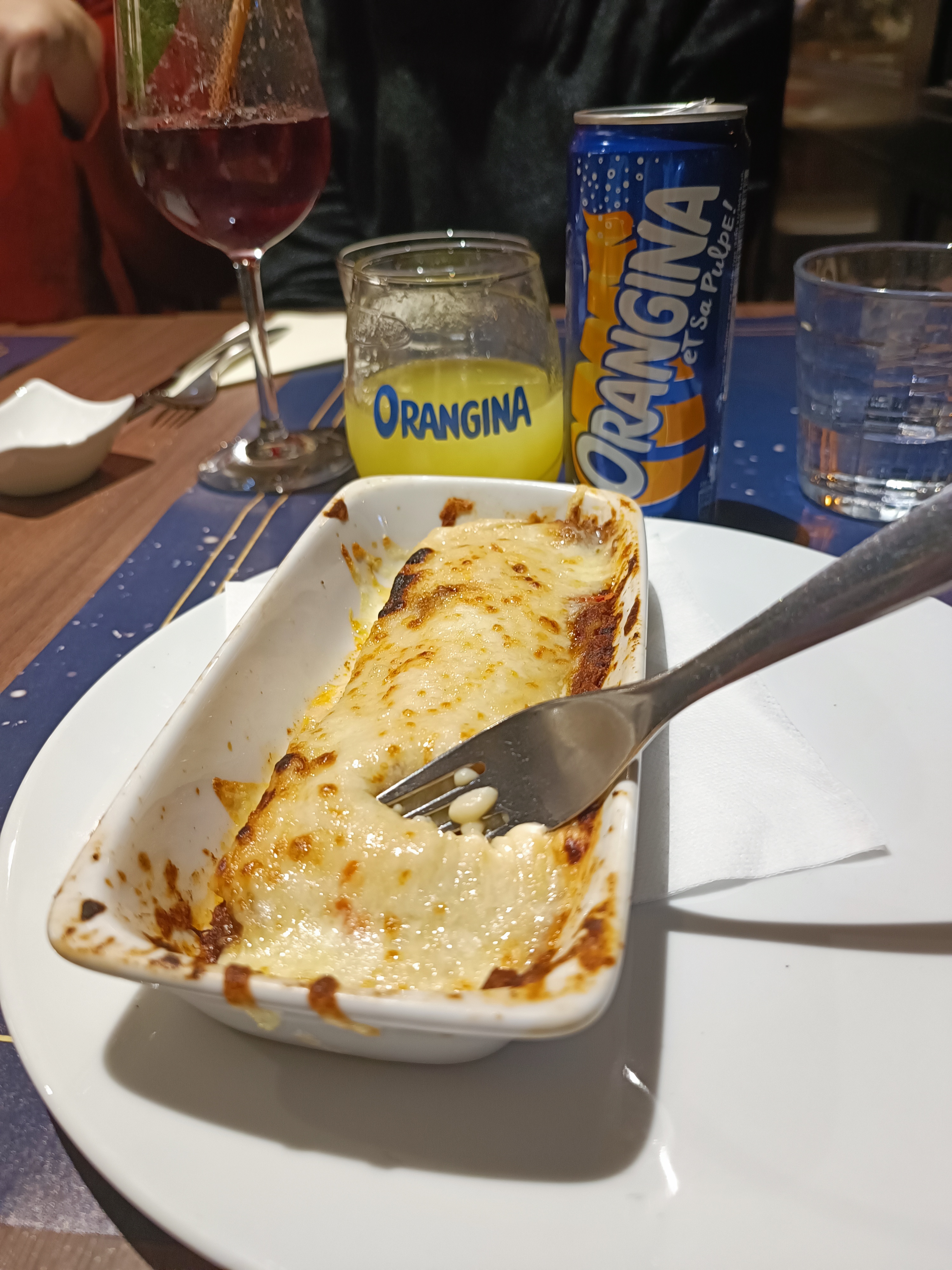 J'ai pris des gnoccis au poulet et mon conjoint des lasagnes, très bonnes. Vous n'allez pas repartir avec la faim ! Le service était un petit peu long mais c'est normal car il y avait beaucoup de monde. Seul bémol : du coup on était très proche des tables voisines. Chacun entendait la conversation des autres, pour l'intimité du repas en amoureux, pas top ! Et la salle était assez bruyante.