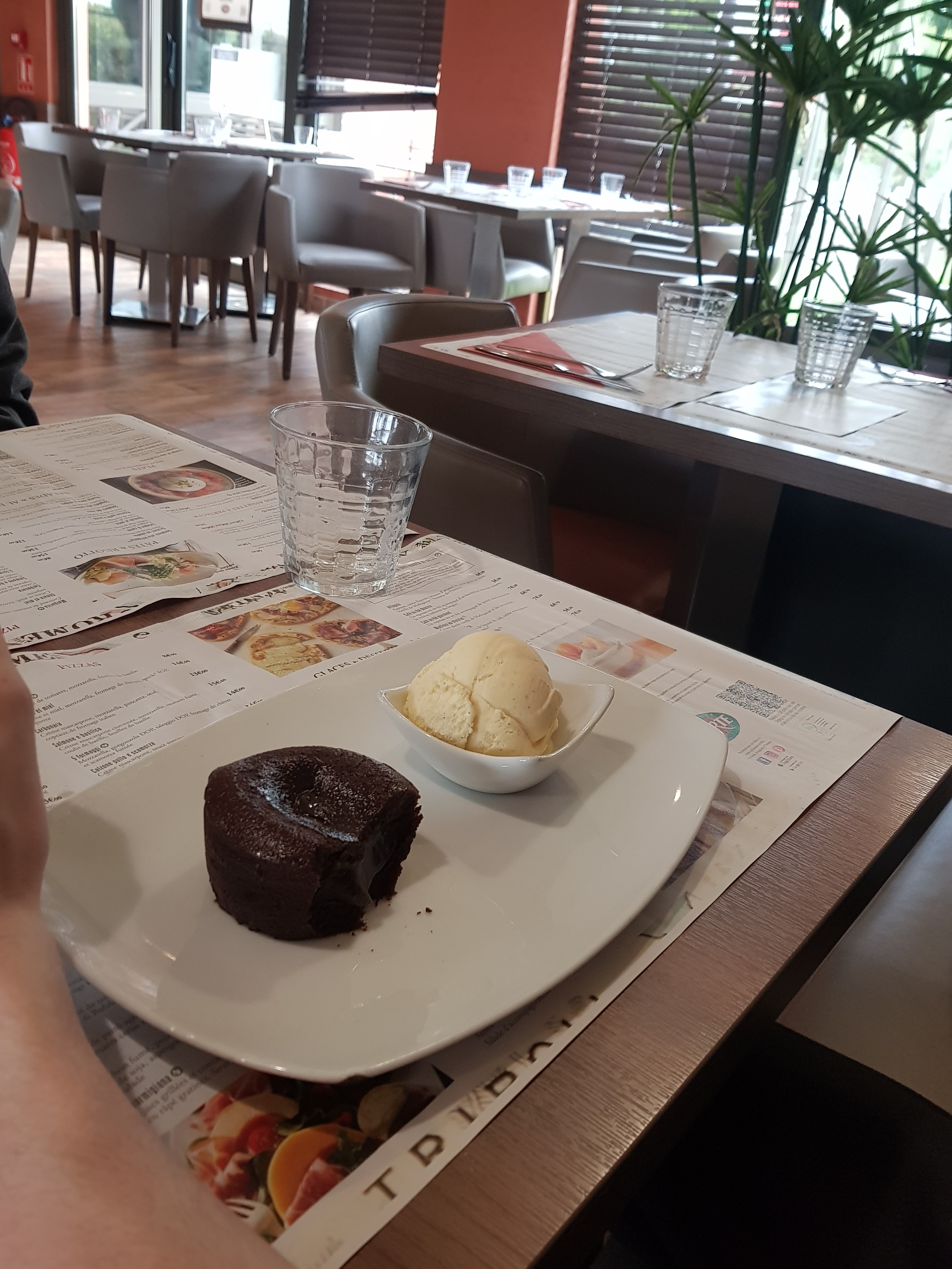 Passage rapide avec ma femme et ma fille de 5 ans. Un peu pris par le temps car beaucoup de route nous attendait pour le retour. Le service a été très rapide, sur notre demande, et les plats simples et bons, Gnocchis à la crème pour ma fille, Spaghettis tomate pour ma femme, et pizza Pollo pour moi, tout était nickel :)