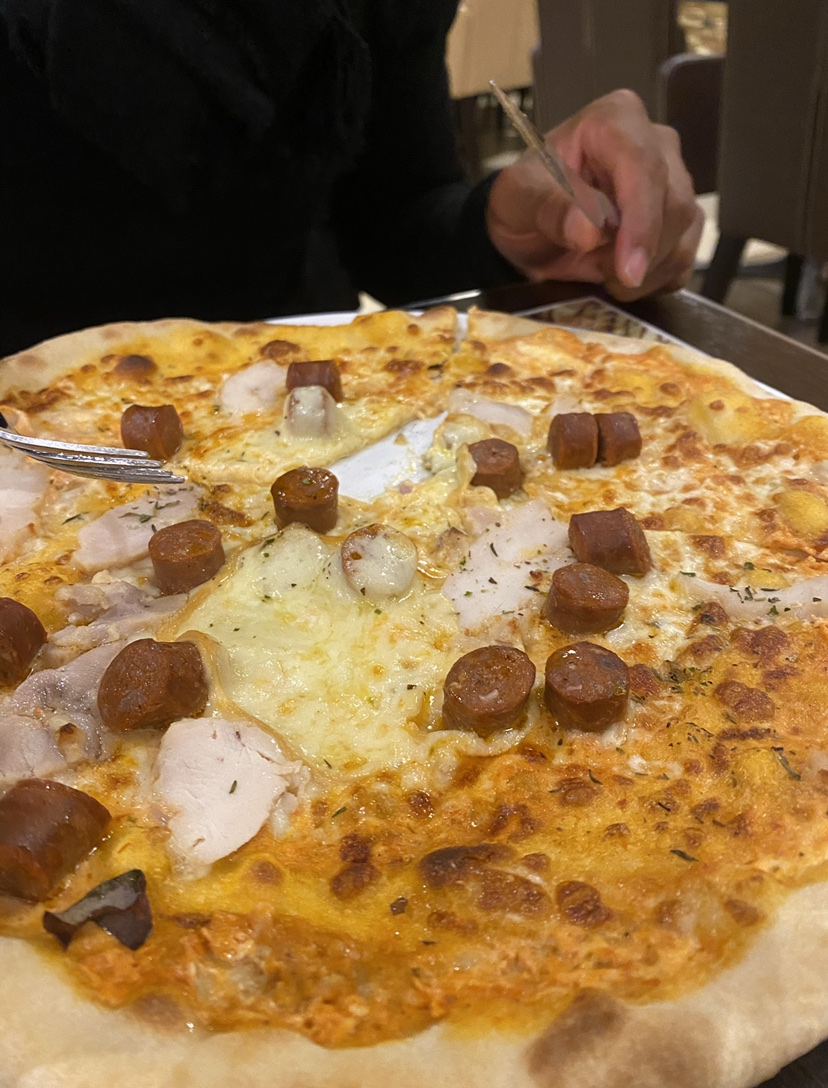 La pizza faite a l’arrache on dirait, pas frais. Trop grasse pour le prix que c’est. Un mauvais rapport qualité prix. Je suis tombé sur un morceau dur, je ne sais pas ce que c’était. Hormis cela, le personnel très accueillant rien a redire.