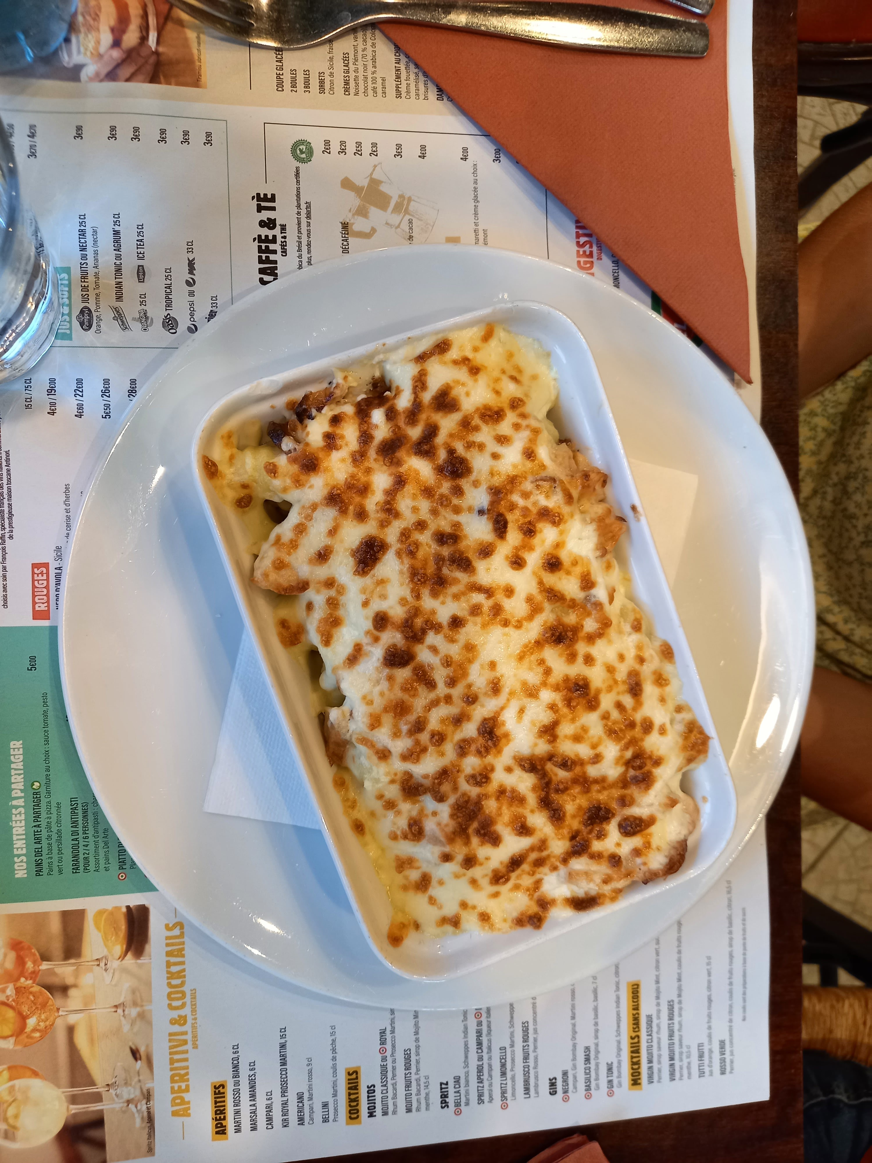 Je trouve que les plats manques de goût, quand on prend pâte bolognaise très peu de viande et peu de sauce, on reste un peu sur sa faim.. La mini dose de parmesan servi dans une petite boîte en plastique je ne comprend pas ? Le risotto est bon mais manque de crème, de sel, de parmesan... Mais j'ai quand même tout manger promis ! J'ai bien aimé votre panacotta en dessert ! Les serveuses sont super gentil et très serviable, malgré le rush elles gardent le sourire et la bonne humeur ça fait plaisir ! Vos prix sont très correct et l'équipe sympa, je ne veux pas du tout insulté l'équipe de cuisine au contraire je tenais juste à vous partager mon avis honnête sur les quelques plats que j'ai pu goûter chez vous.