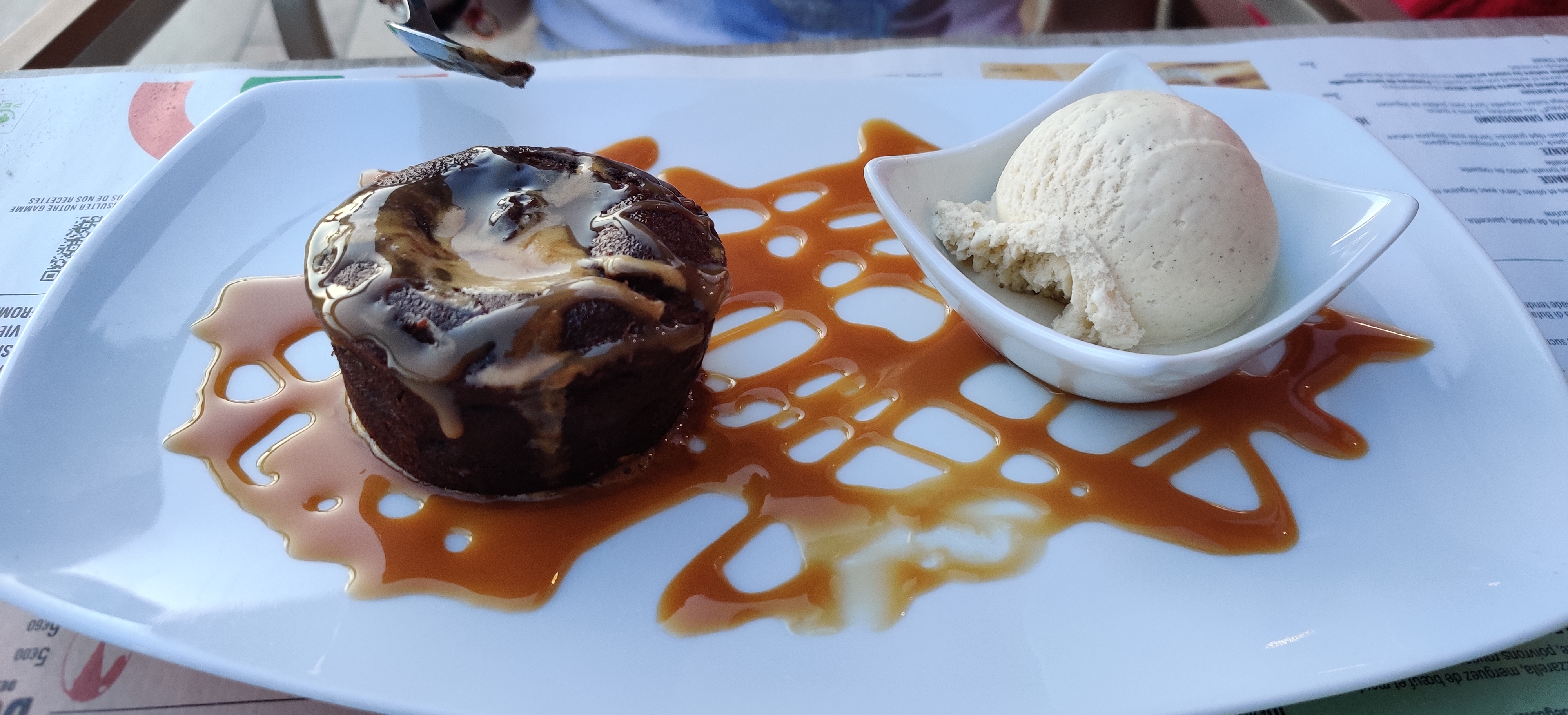 La jeune serveuse toute gentille qui nous a servie est partie en pause. Nos desserts ont été préparés par le cuistot mais personne n’est aller les chercher et quand enfin un serveur nous les a ramener toute fondue, il nous a pris de haut sans s’excuser