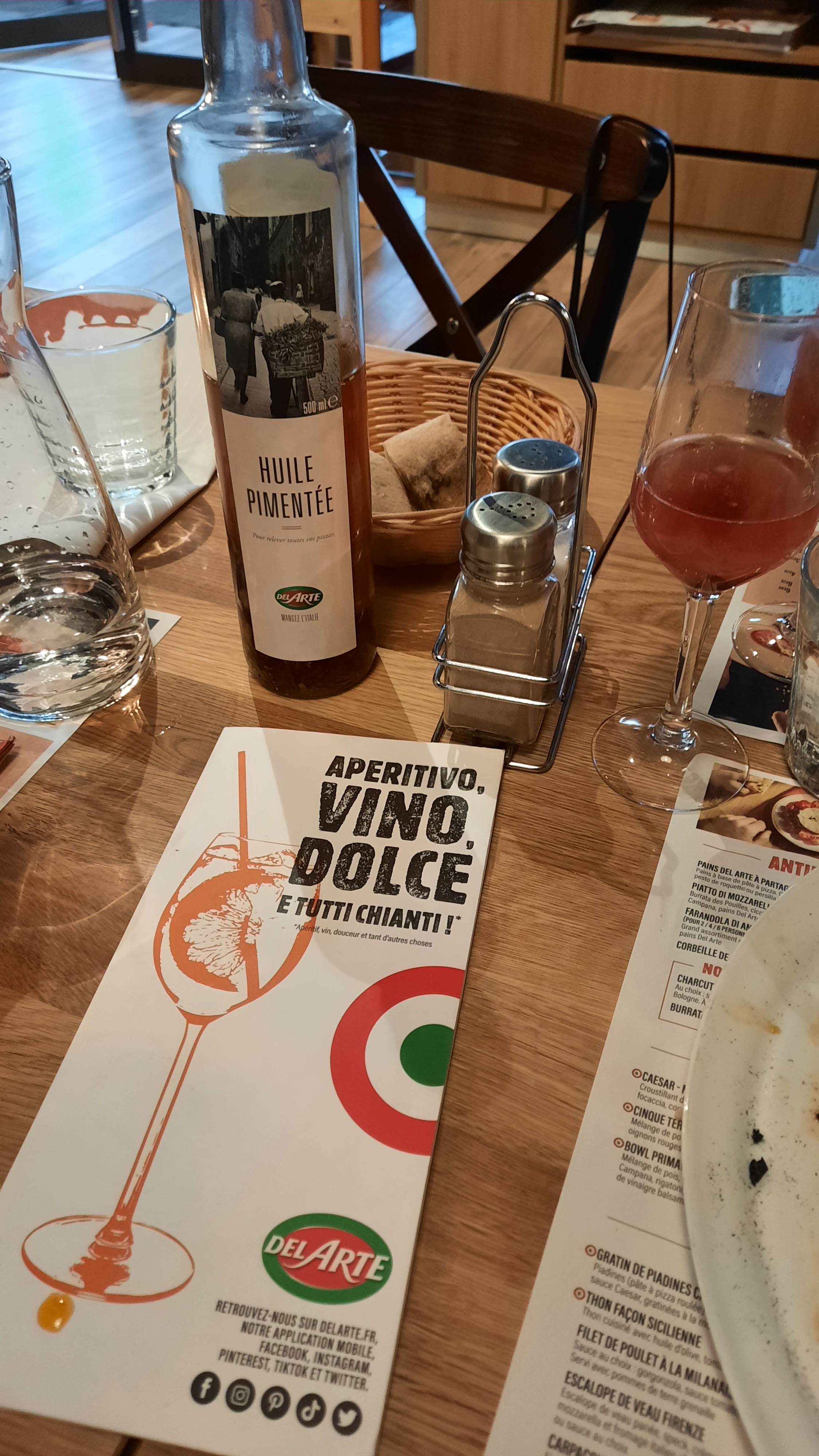 Nous sommes venus fêter un Èvenement a del arte qui est un restaurant que nous adorons en temps normal, la serveuse commence par se tromper en nous aportant une bière, au lieu de la bouteille de vin que nous avions commandé mais nous reprends la bière jusque-là, rien de très grave, puis nous continuons quand elle nous signifie gentiment que nous la faisons la déranger pour être poli ensuite notre ami commande une pizza à la carbonara en lui montrant bien que c’est une pizza sur la carte mais on lui apporte des pâtes. Le serveur très gentil lui propose de lui ramener sa pizza. la serveuse revient en voulant nous débarrasser le verre à moitié vide , l’une d’entre nous se dépêche de manger son repas car elle a peur qu’elle lui débarrasse son assiette si elle part aux toilettes ce qui n’a pas manqué, puisque 10 minutes après elle arrive, en voulant débarrasser la moitié des assiettes de la table, puisque la moitié des personnes avaient terminé en précisant que l’autre moitié n’avait pas terminé leur plat c’est qui je trouve à mon goût n’est pas professionnel et signifie gentiment aux clients que l’on souhaite qu’il parte vite bref je ne continuerai pas sur cet avis nous reviendrons car nous aimons ce restaurant, mais n’espérons pas être servi par la même serveuse. Merci et bonne soirée à vous