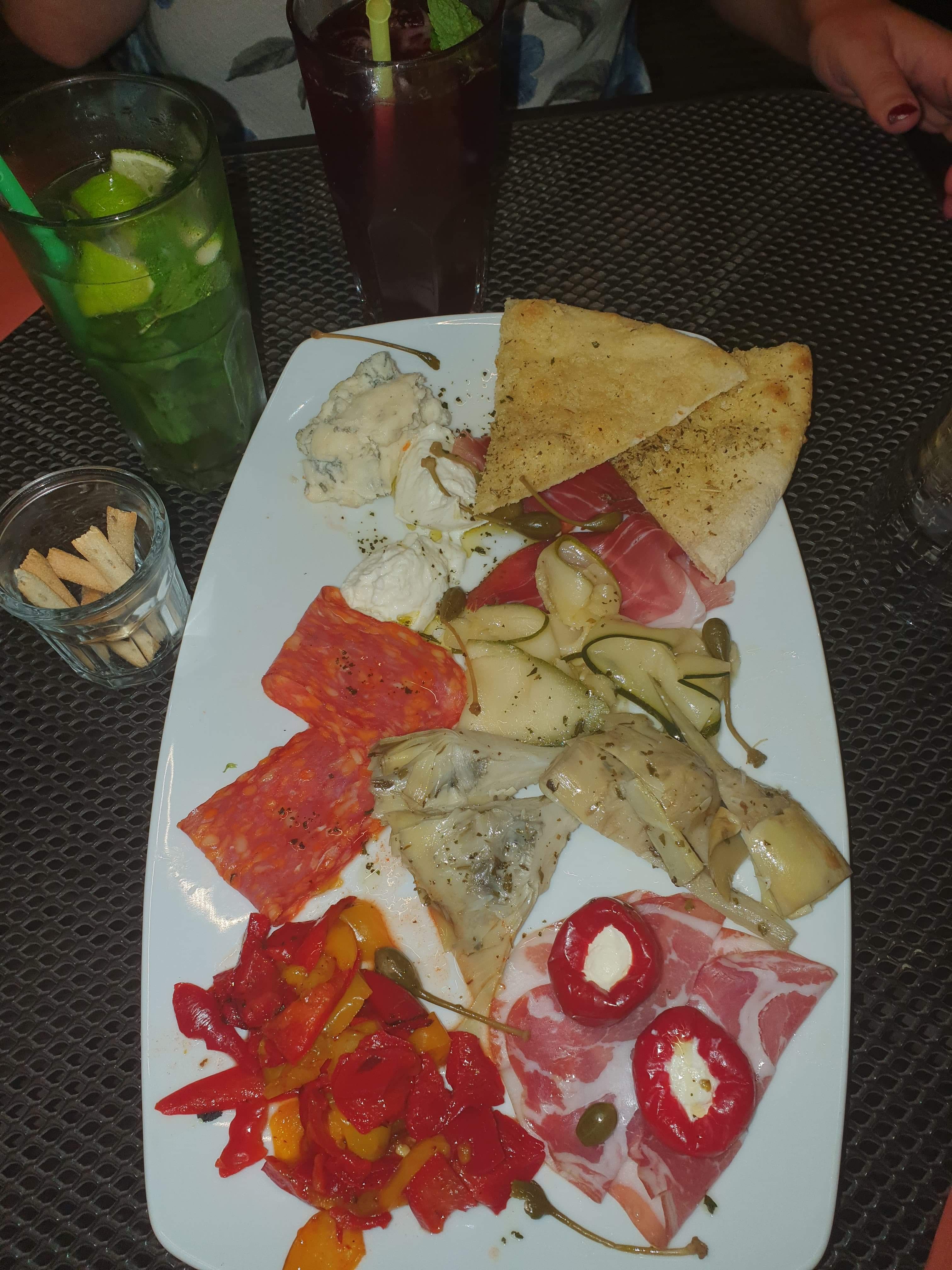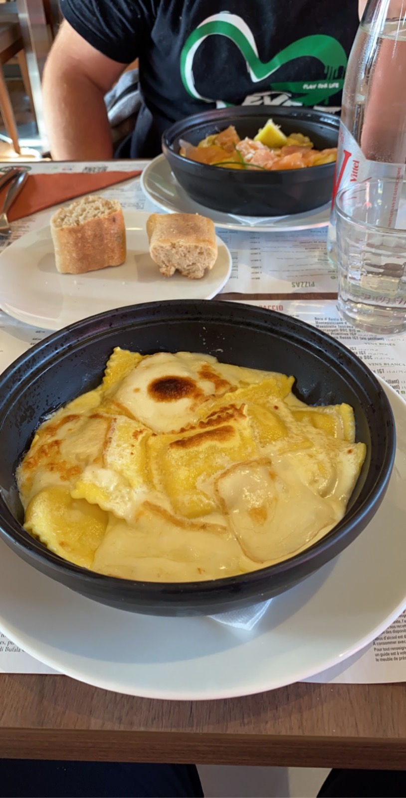L'entrée apéritif un peu salé mais les pâtes et pizzas sublimes, le dessert une explosion de saveurs nul autre ailleurs (pêche et glaces)