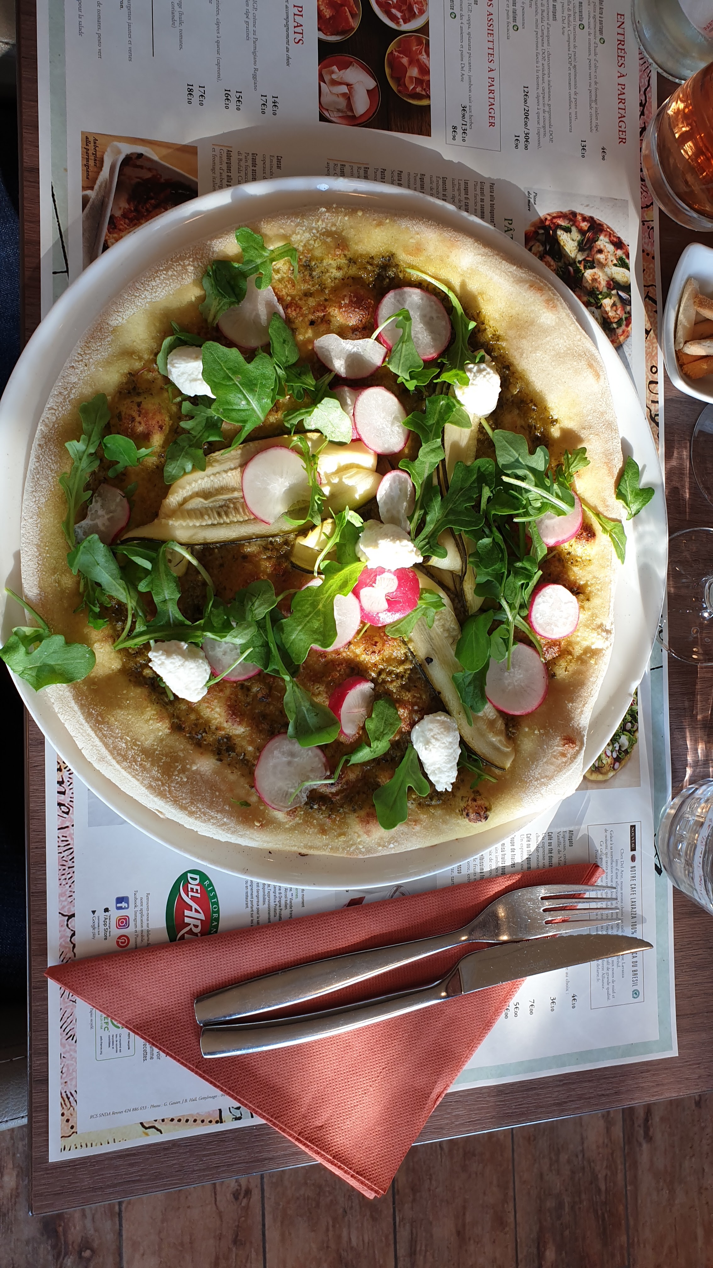 Points positifs : restaurant très jolie et carte renouvelée Points négatifs de notre expérience : un restaurant qui supporte péniblement l’affluence forte Nous avons commander une pizza végétarienne, qui arrive tardivement et avec du jambon sur celle ci, je ne jette pas la pierre l’erreur est humaine, mais enlever le jambon a même le comptoir pour nous la ramener à table ça c’est non ! Je reviendrais vers vous pour une commande à emporter ou en livraison mais probablement plus dans votre restaurant. Pour terminer je trouve ça navrant de travailler dans la restauration et entendre le manager soupirer toute la soirée ou entendre des querelles entres les serveuses et la cuisine.