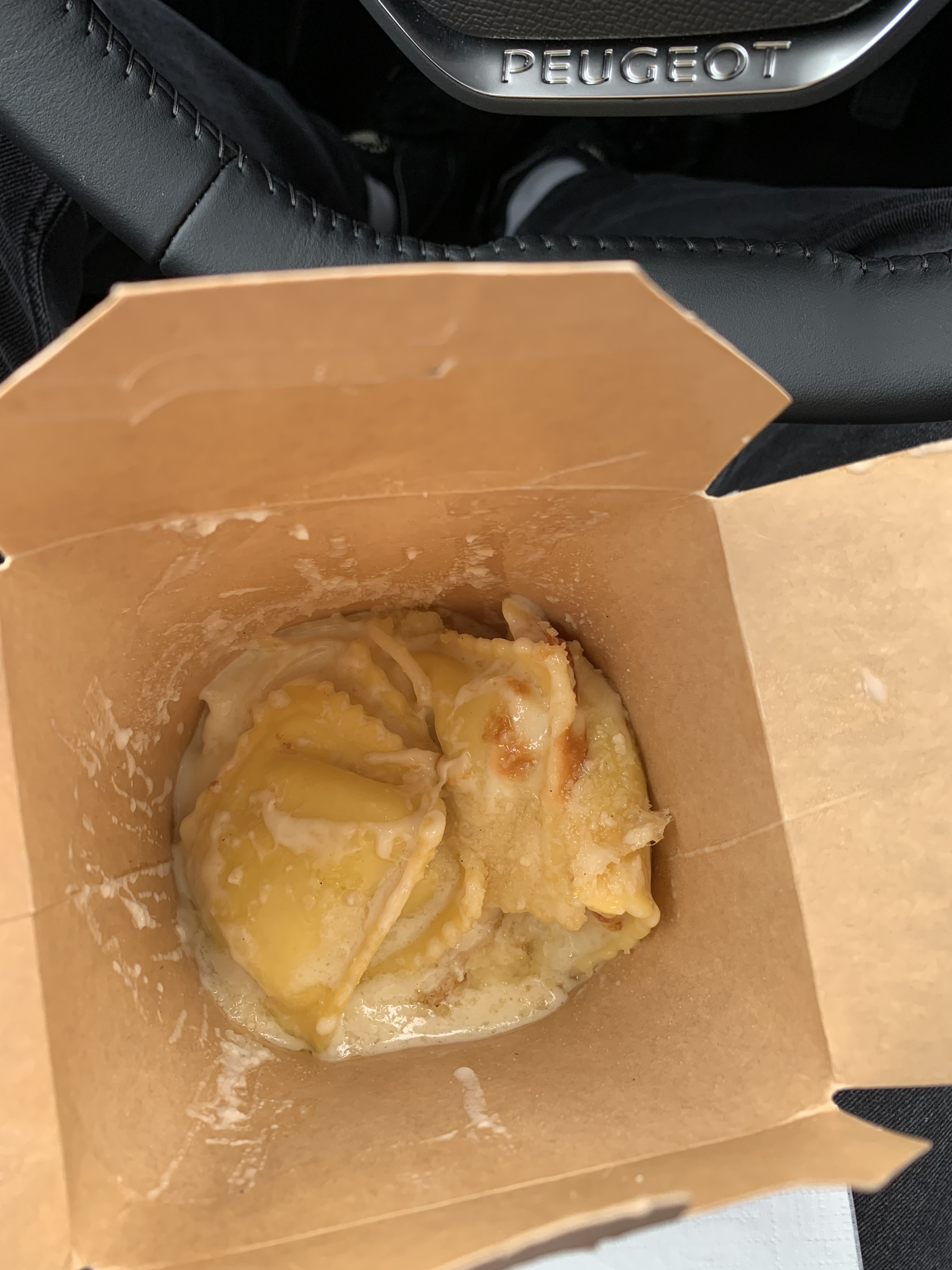 Merci pour la pasta box, 4 raviolis qui se battent en duel. 13.50€ pour ça ? Mon ventre crie encore famine !!! heureusement que j’avais mes curly dans le coffre. Passez votre chemin...