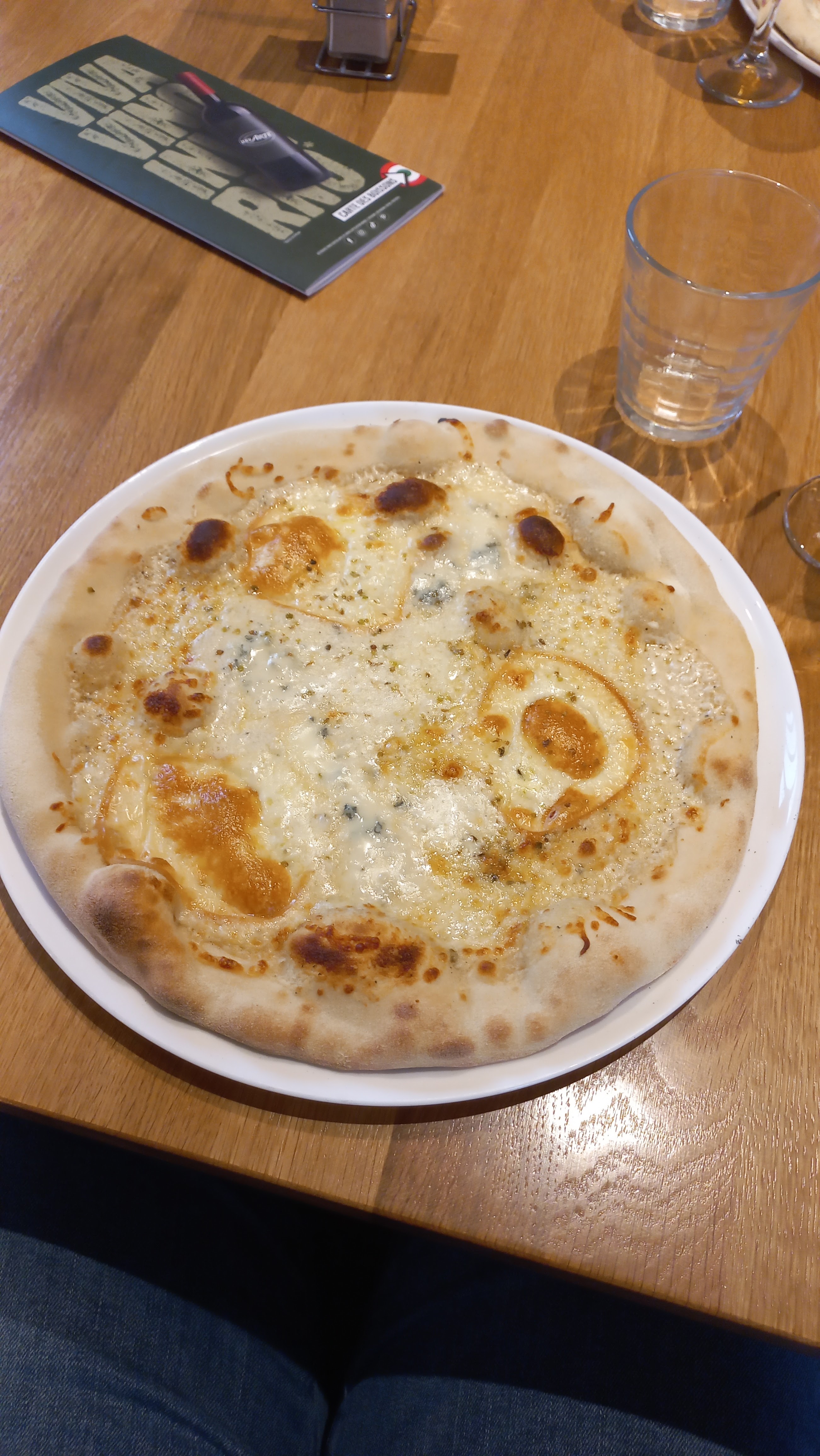 L’accueil des serveurs et le service sont excellents serviables, courtois, et souriants, le patron qui nous a encaissé beaucoup moins, Il n’a même pas demandé si tout s’etait bien passé, n’a pas eu d’autres échanges que m’indiquer le montant et prendre ma cb, je trouve cela moyen… En ce qui concerne la pizza, j’ai pris une quatre fromages et elle est franchement médiocre. Les autres personnes atablées avec moi ont trouvé les leurs moyennes aussi.