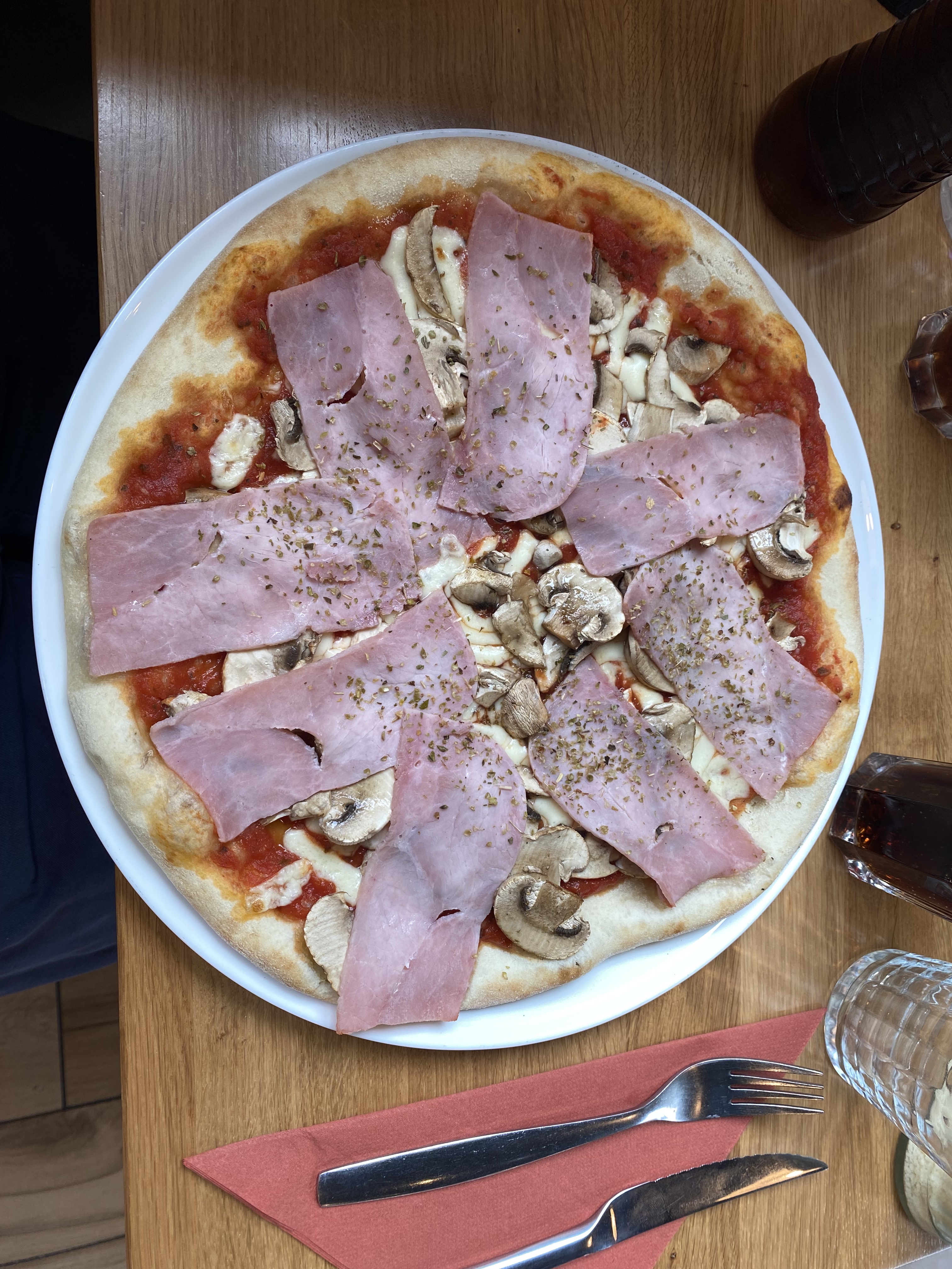 Pour une première fois, très déçue salade Cesar à revoir d'urgence !, pizza Regina avec 2 petites lamelles de champignons et jambon grossier et sec! Pour des professionnels pas du tout top! Beaucoup de produits manquants au menu.... champignon