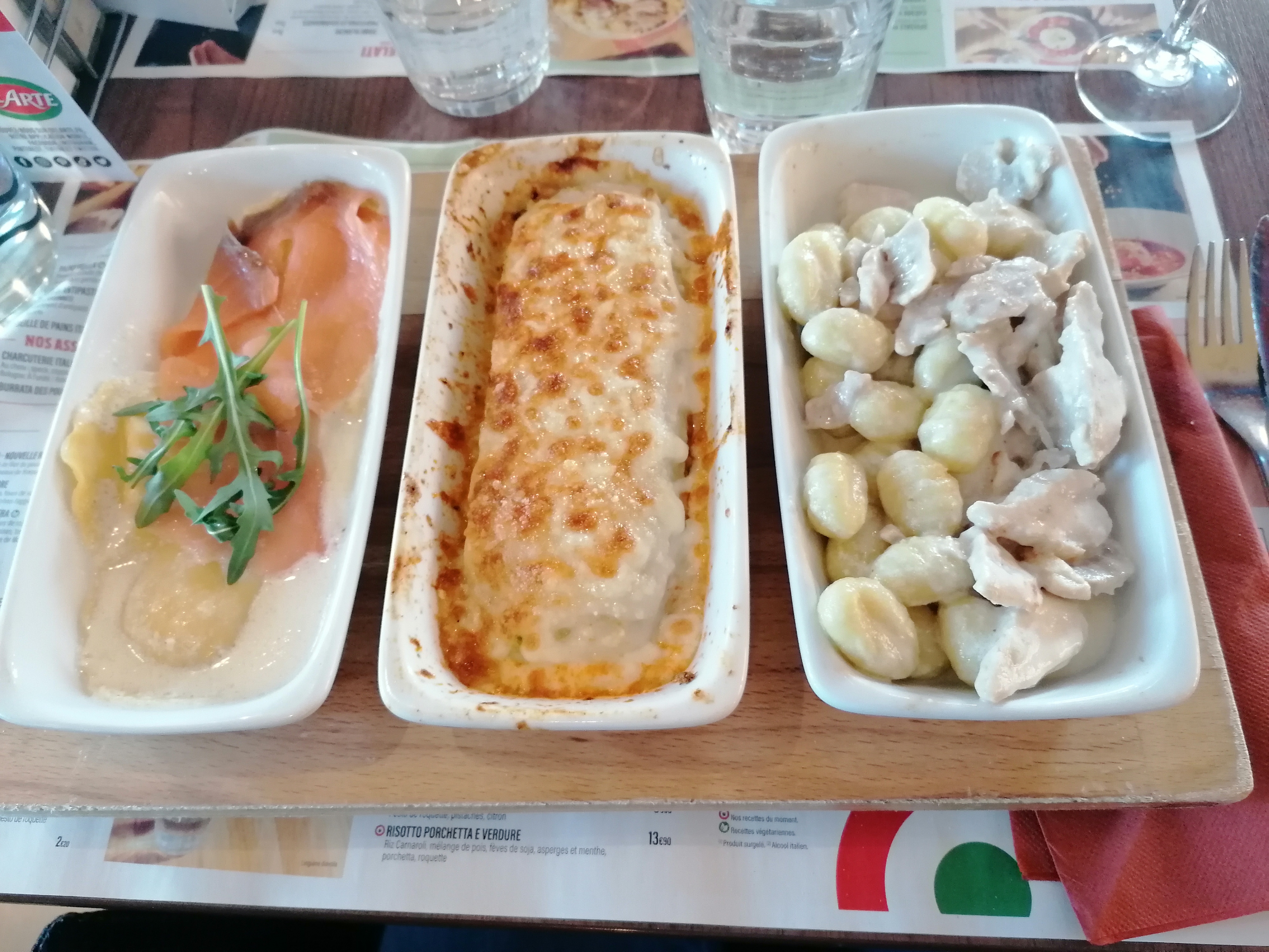 J'ai l'habitude de prendre une pizza lorsque je me rends dans une pizzeria. J'ai innové en prenant des pâtes gratinées au speck et au fromage. Très bon.