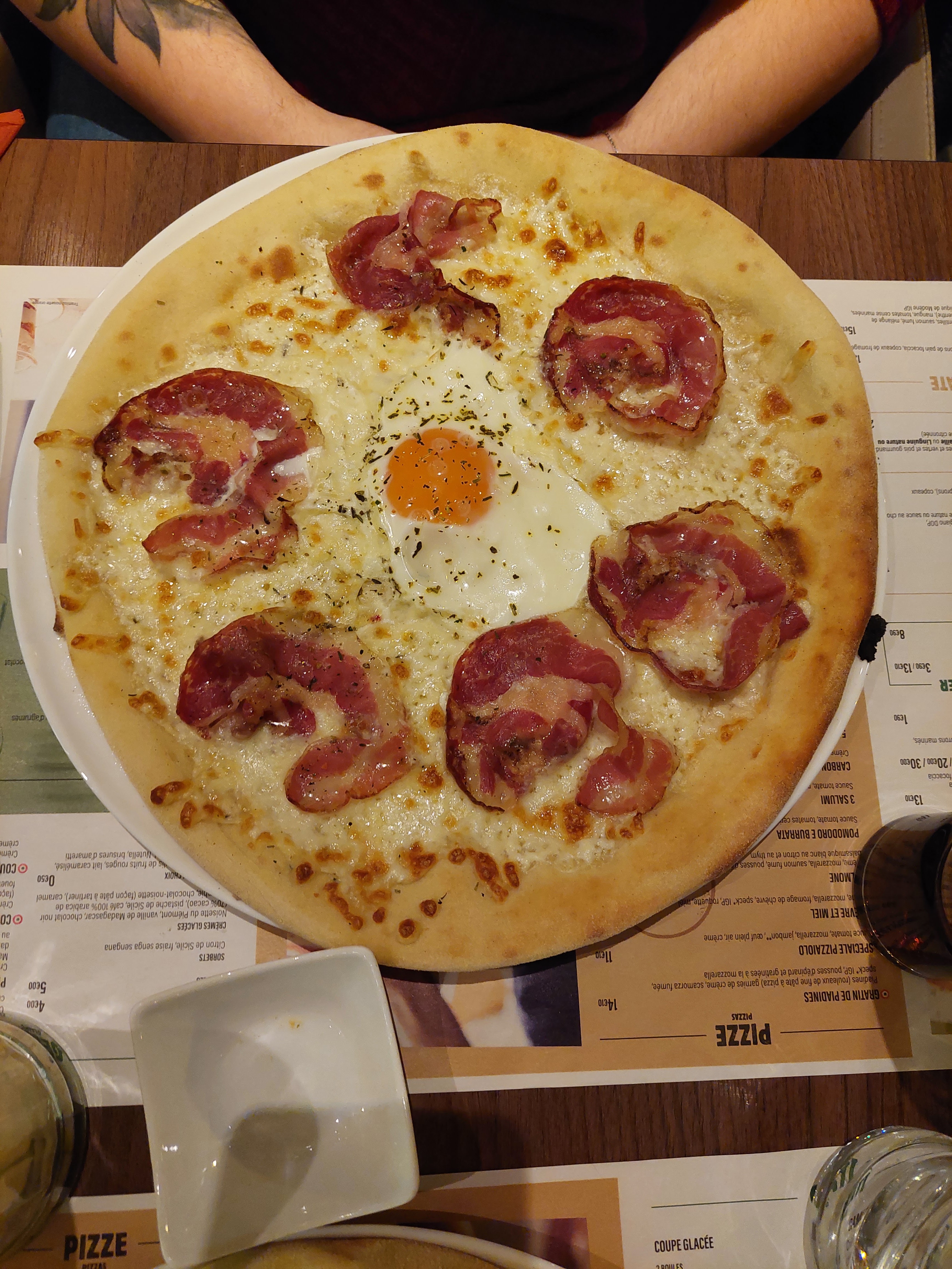 Nous avons passé un excellent moment, notre serveuse à été au petit soin avec nous ce soir. La responsable il me semble (une brune à lunettes) très souriante et joyeuse et très courtoise envers les employés du restaurant. Elle nous à vraiment rendu la soirée agréable par sa joie de vivre. Les pizza étaient cuites à souhait et bien garni. Nous avons passé un excellent moment.