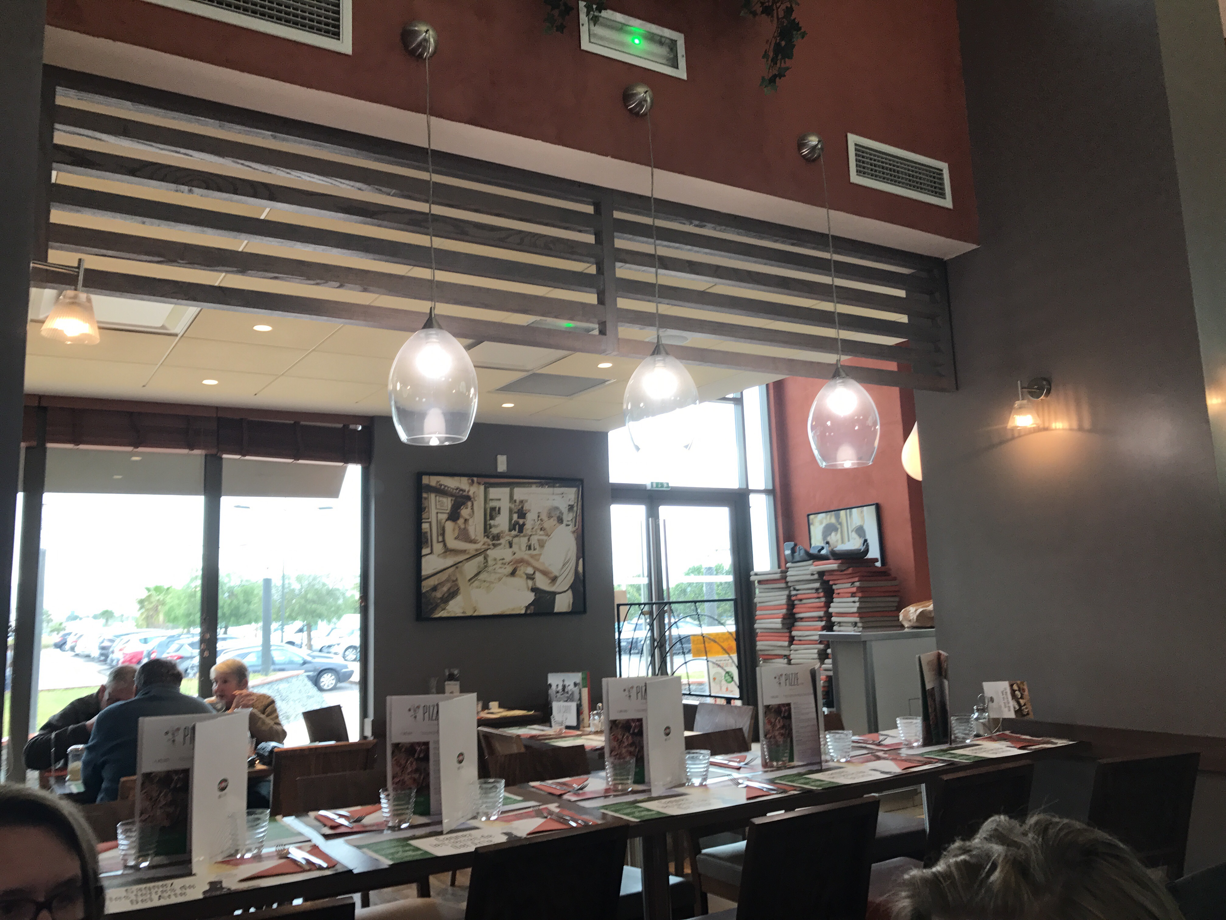 Nous nous sommes arrêté dans cette établissement pour dîner à notre rentrée de vacances , donc pizza dans la lignée de la chaîne . Le bémol surtout c'est le peux de différence entre une pizza classique et les pizzetta tout juste 3 euros pour une demi pizza je trouve cela assez élevé à mon goût .. dommage