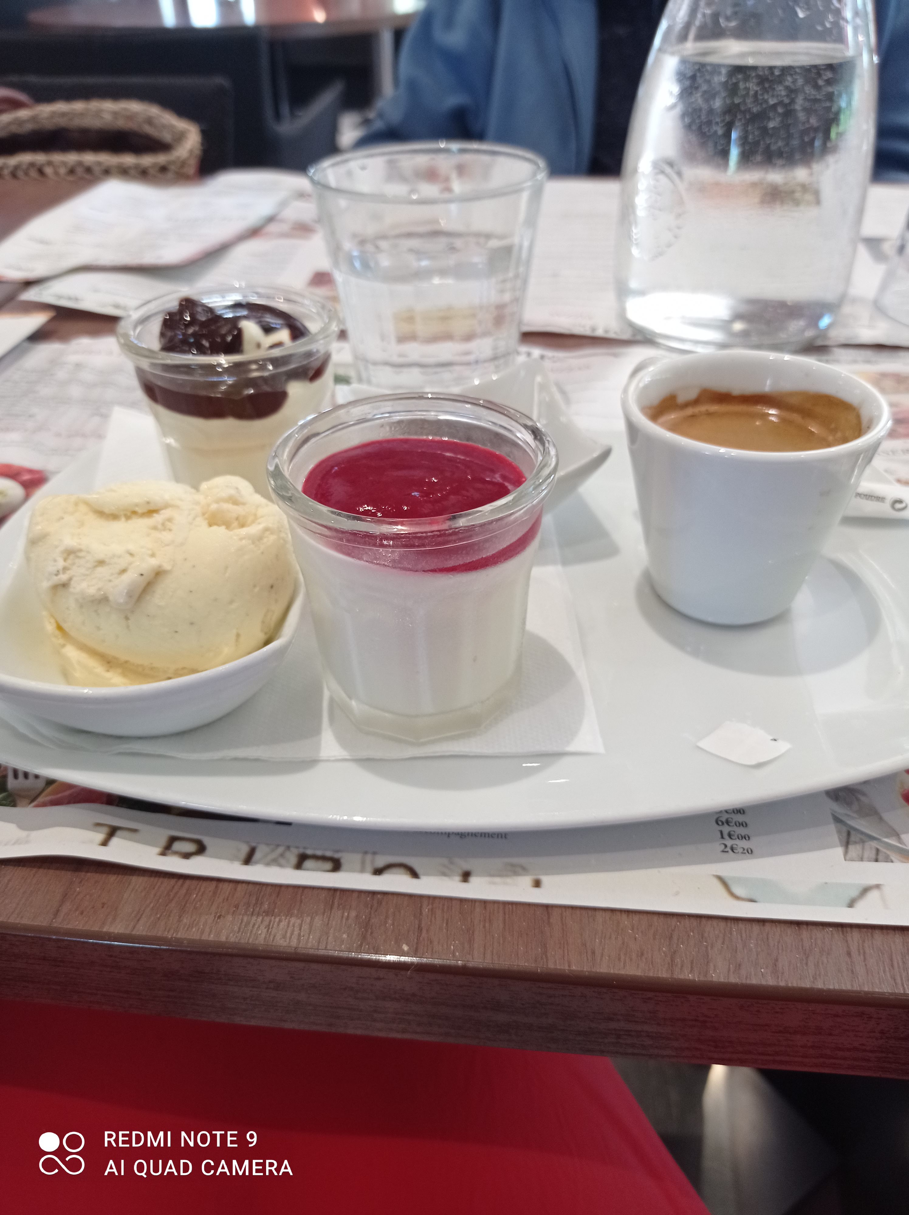 Nous avons commandé une pizza del mare et des pâtes au poulet et pesto. Ces deux plats étaient bons et copieux, tout comme le café gourmand. Le service était un peu lent mais les serveuses étaient en formation, et ça a été compensé par leur gentillesse.