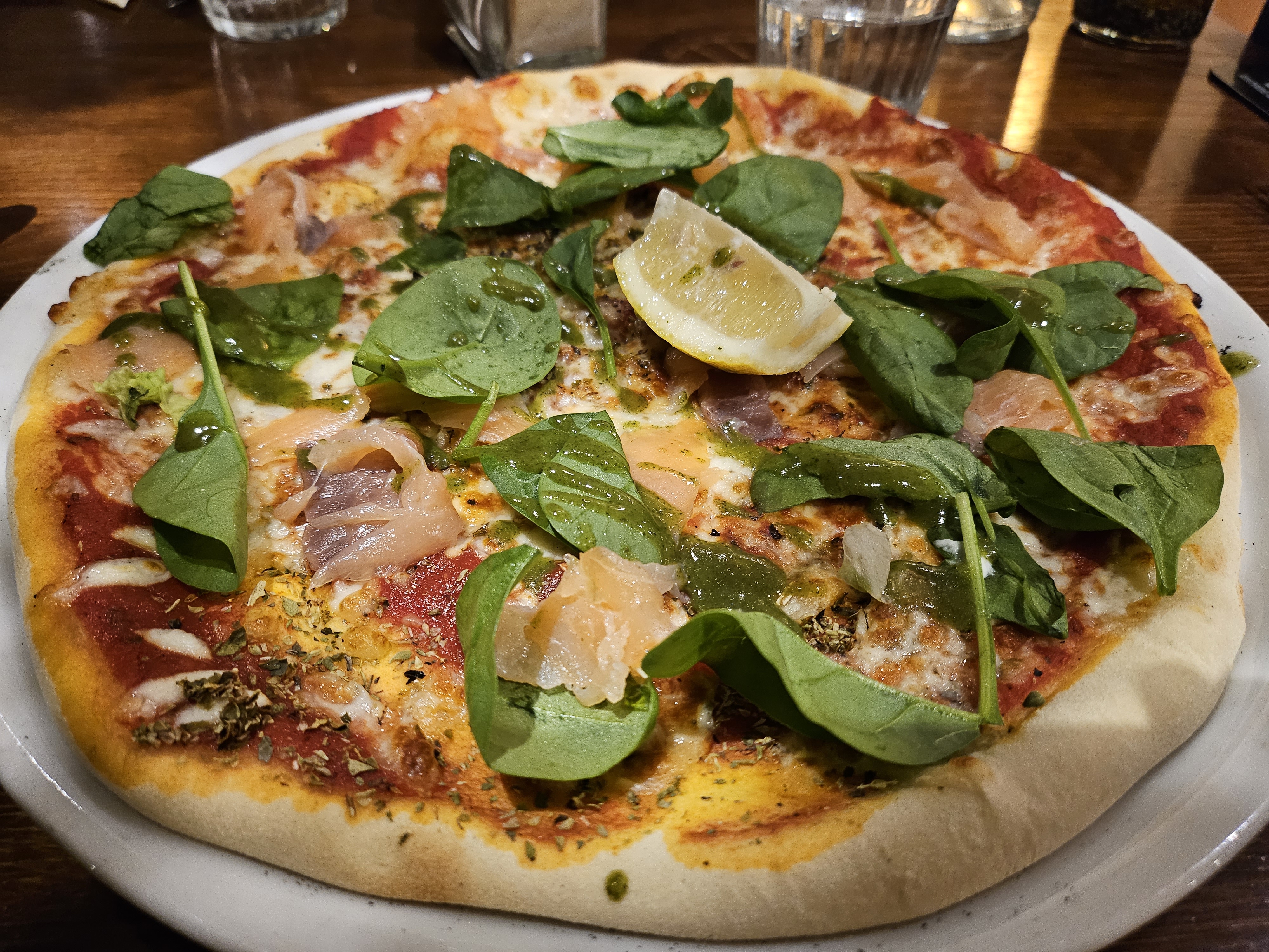Service correcte pour une quinzaine de personne, les plats sont arrivés quasiment en même temps, pizza au saumon goûteuse et fidèle à ce qu’elle soit être.