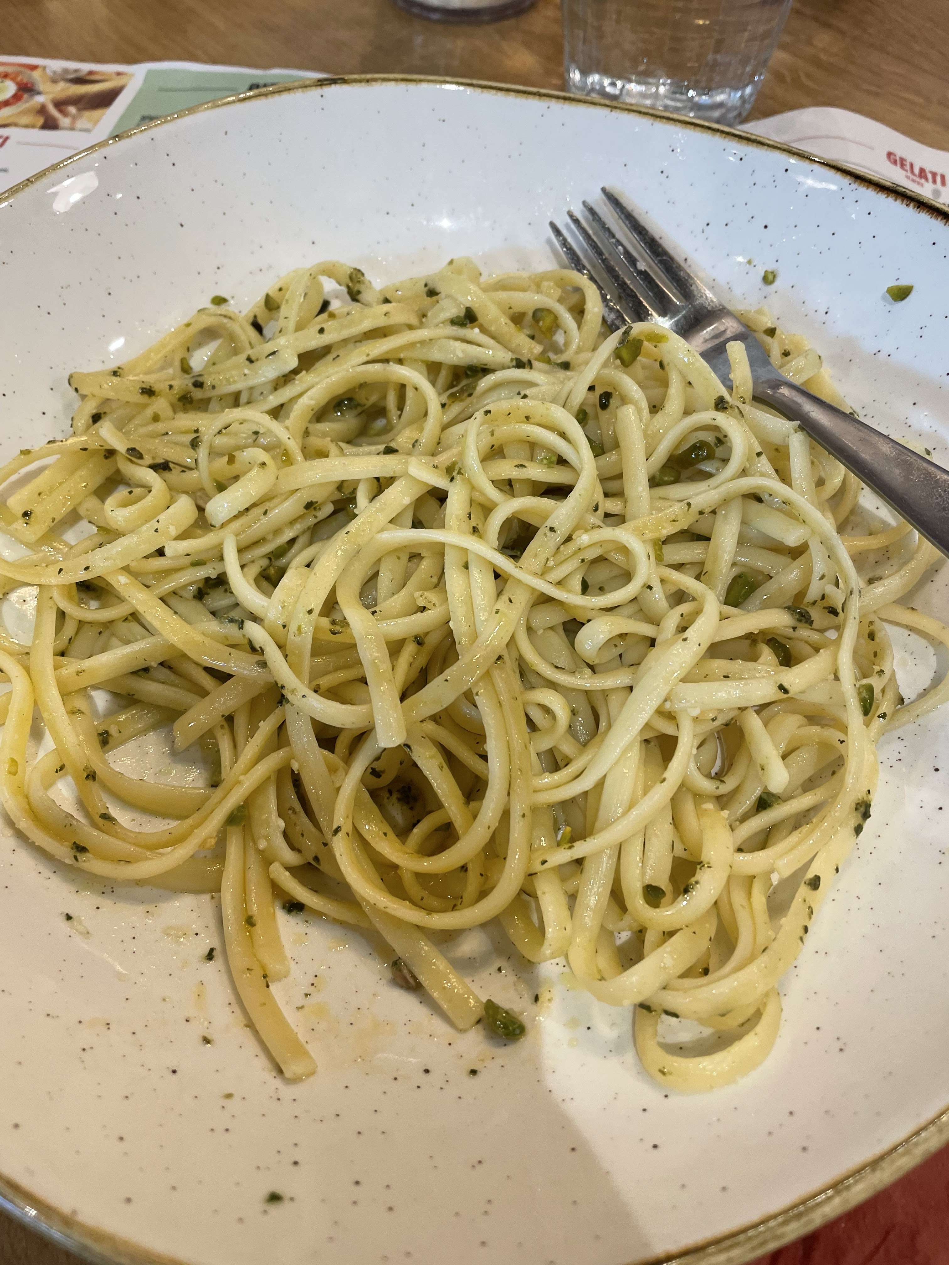 Après une attente infinie (15 minutes pour avoir la table et puis 30 minutes rien que pour faire la commande), j'ai eu droit à un verre sale (qui m'a été remplacé, après ma demande, par un autre UN PEU plus propre). Et mon expérience s'est terminée par les pâtes tièdes voire froides... L'équipe a l'air sympa, mais débordée et juste pas attentive. À éviter.