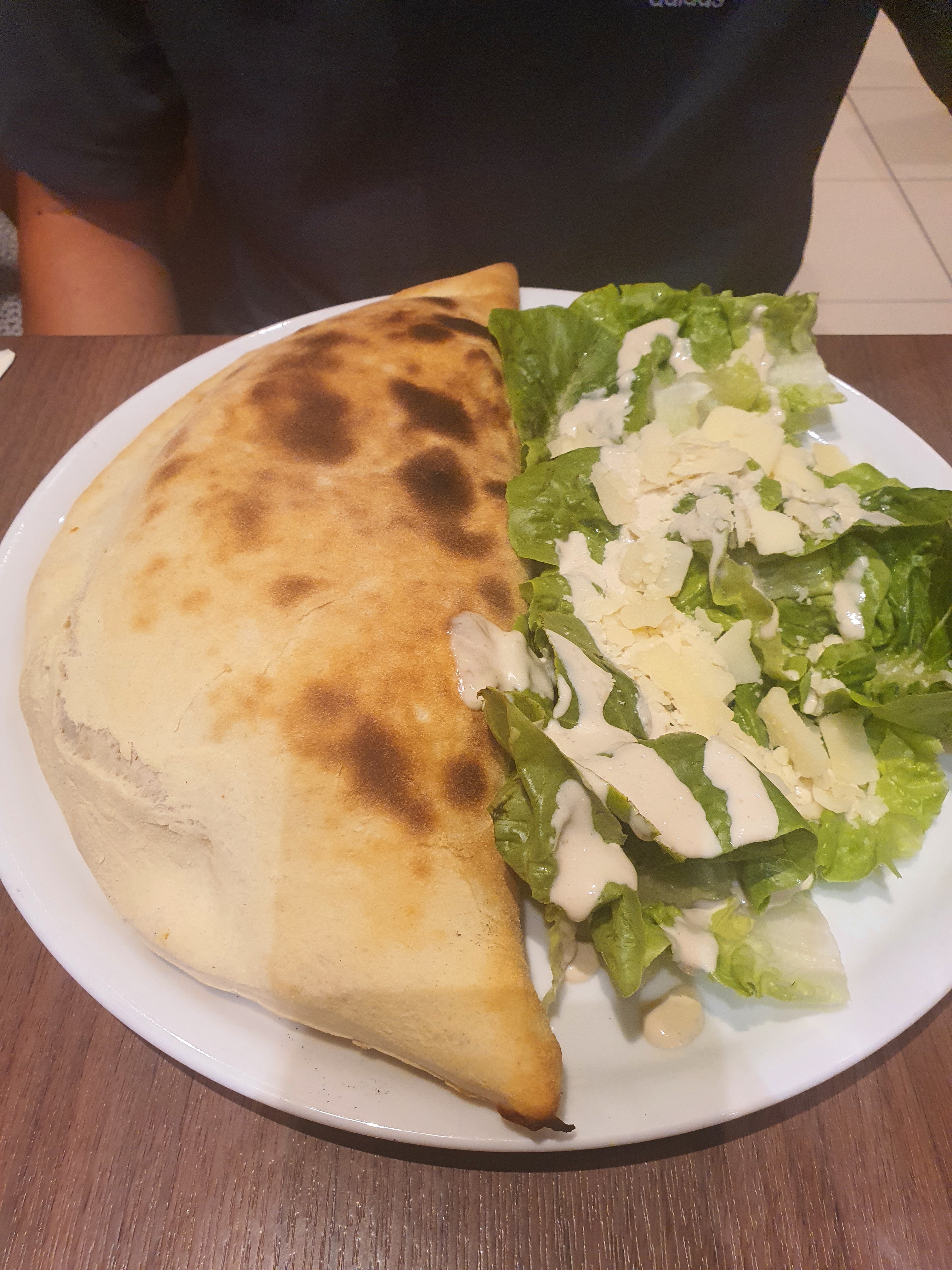 Gérant avec un plâtre au bras qui était bien présent sur son poste de travail alors bravo !! Très sympathique , bon accueil , petite touche d humour que nous avons appréciée mon compagnon et moi même . Pizza très bonne avec le saumon pour mon compagnon , et salade pour ma part . Au plaisir de revenir avant notre petite séance cinéma qui se trouve en face . Merci