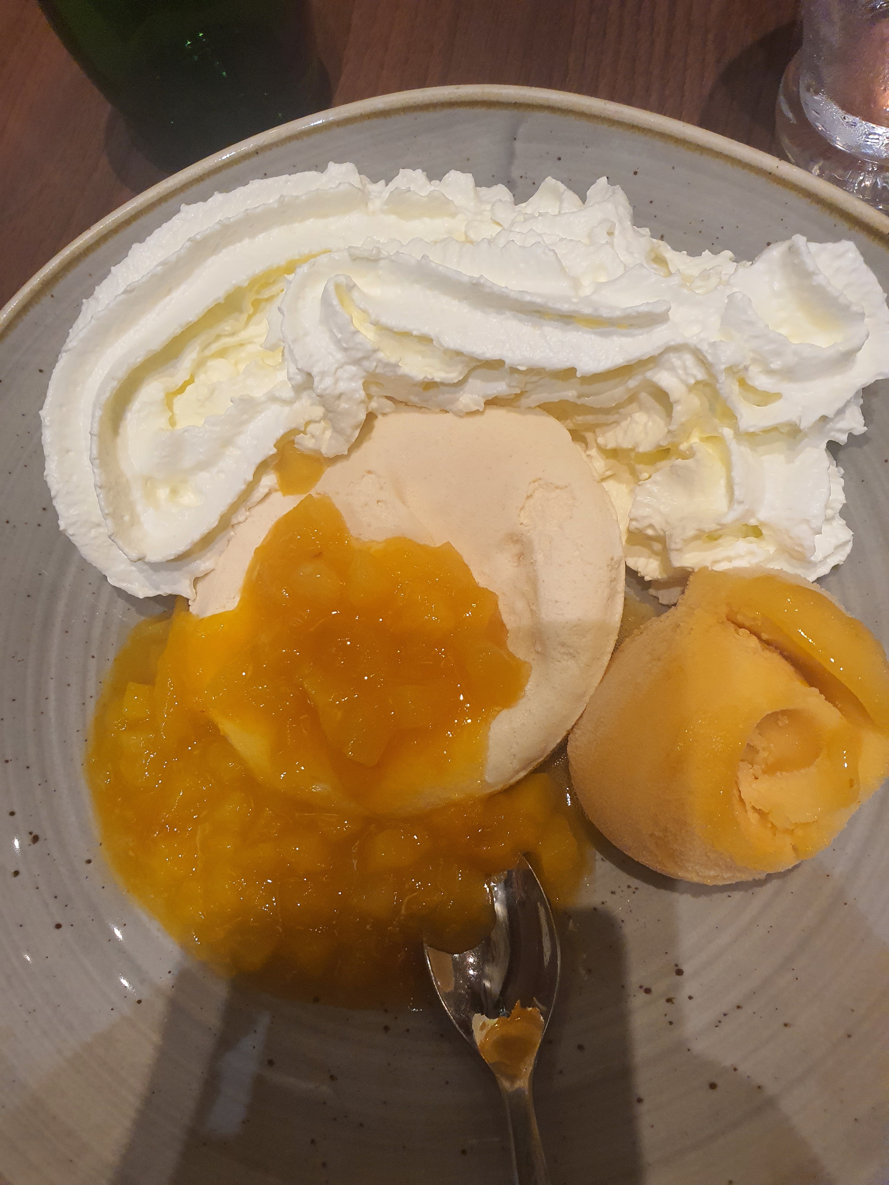 attente un peu longue pour nous demander l'apéritif puis service rapide. 3 pizzas sur 4 bonnes, la 4ème très clairsemée. Mais mauvaise surprise au dessert, 2 dames blanches minables servies dans une petite coupelle , dessert très décevant autant par la quantité que sa conception. On ne reviendra pas.