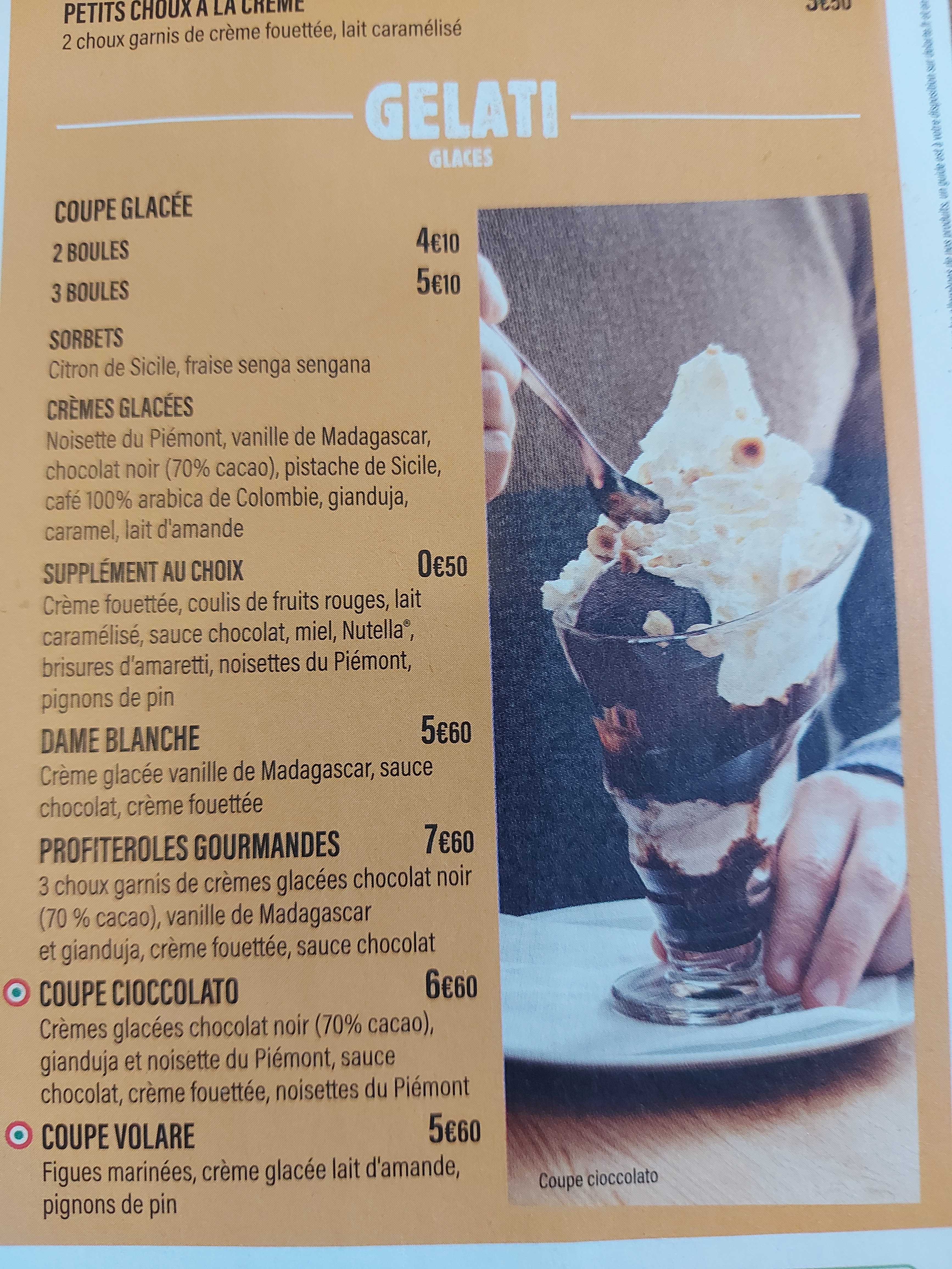 Serveurs très accueillants et agréables mais cuisine très décevante... les focaccias avec nos salades étaient carbonisées donc immangeables et elles étaient recouvertes de concentré de tomates pour le cacher. Dessert du moment plus disponible.