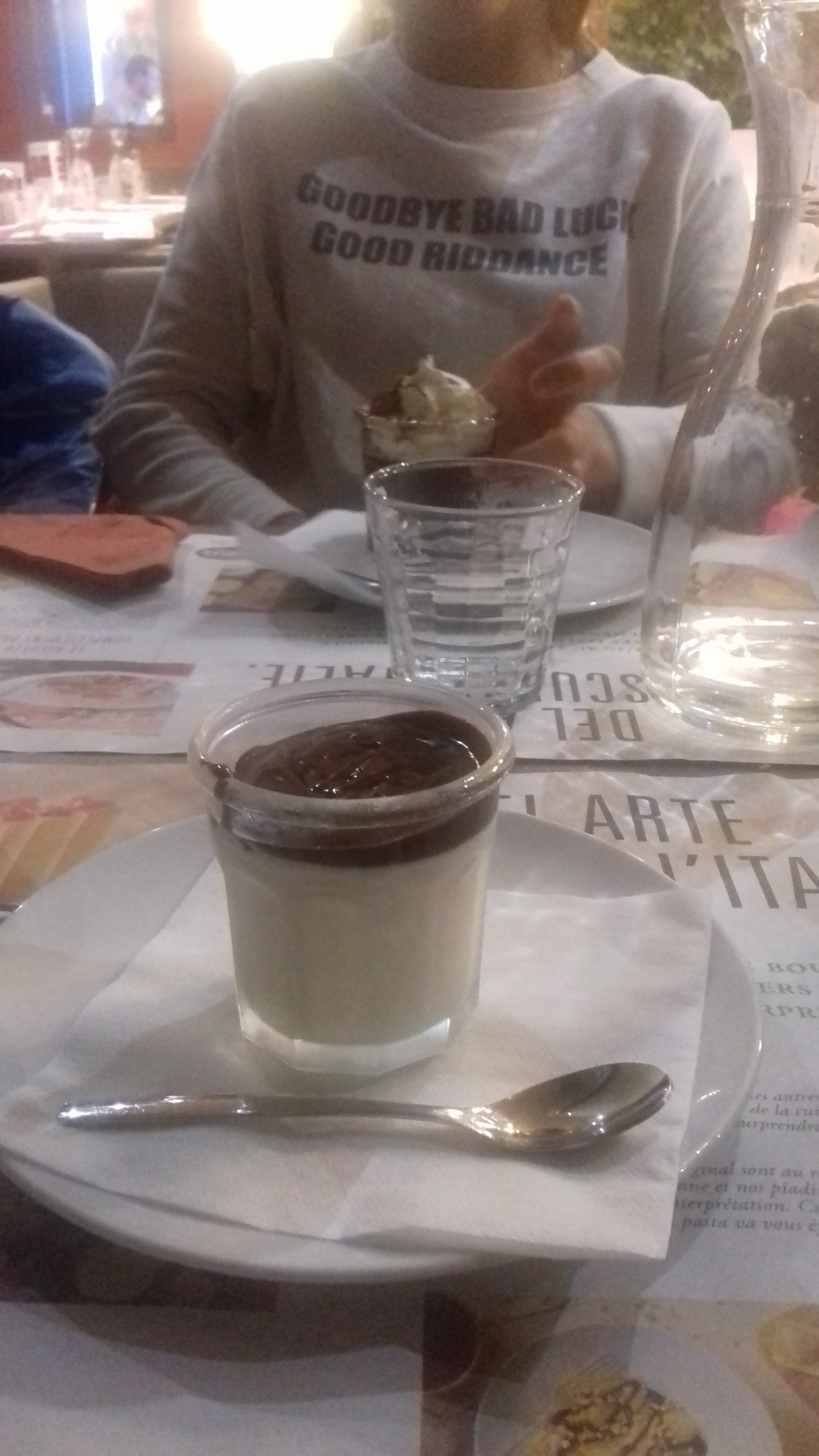 J'ai mangé des lasagnes (j'ai déjà mangé mieux), c'était bon. Par contre, il ne faut vraiment pas être pressé de manger ni mourir de faim... On a bien attendu avant que quelqu'un vienne prendre notre commande ! J'ai enlevé une étoile pour l'attente...