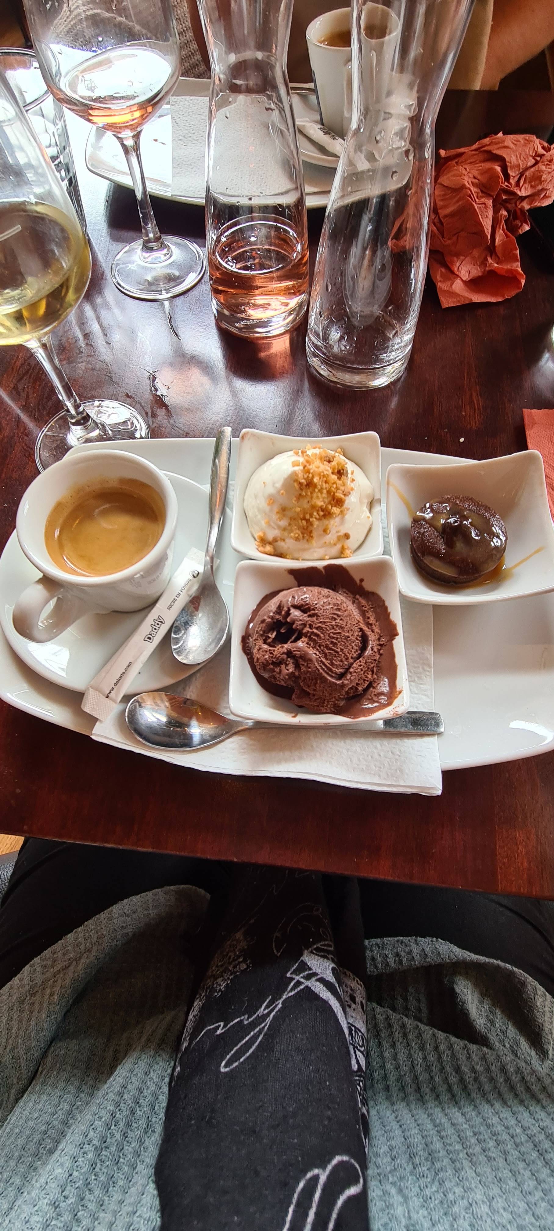 Nous sommes arrivés vers 14h et avons eu un bon accueil Nous avons pris des cocktails sans alcool ainsi que de très bonnes pizzas, chèvre miel pour moi (dommage j'ai oublié de faire des photos) Et j'ai pris 1 café gourmand avec 4 gourmandises, juste délicieux Prix correct !! Je recommande ce charmant restaurant