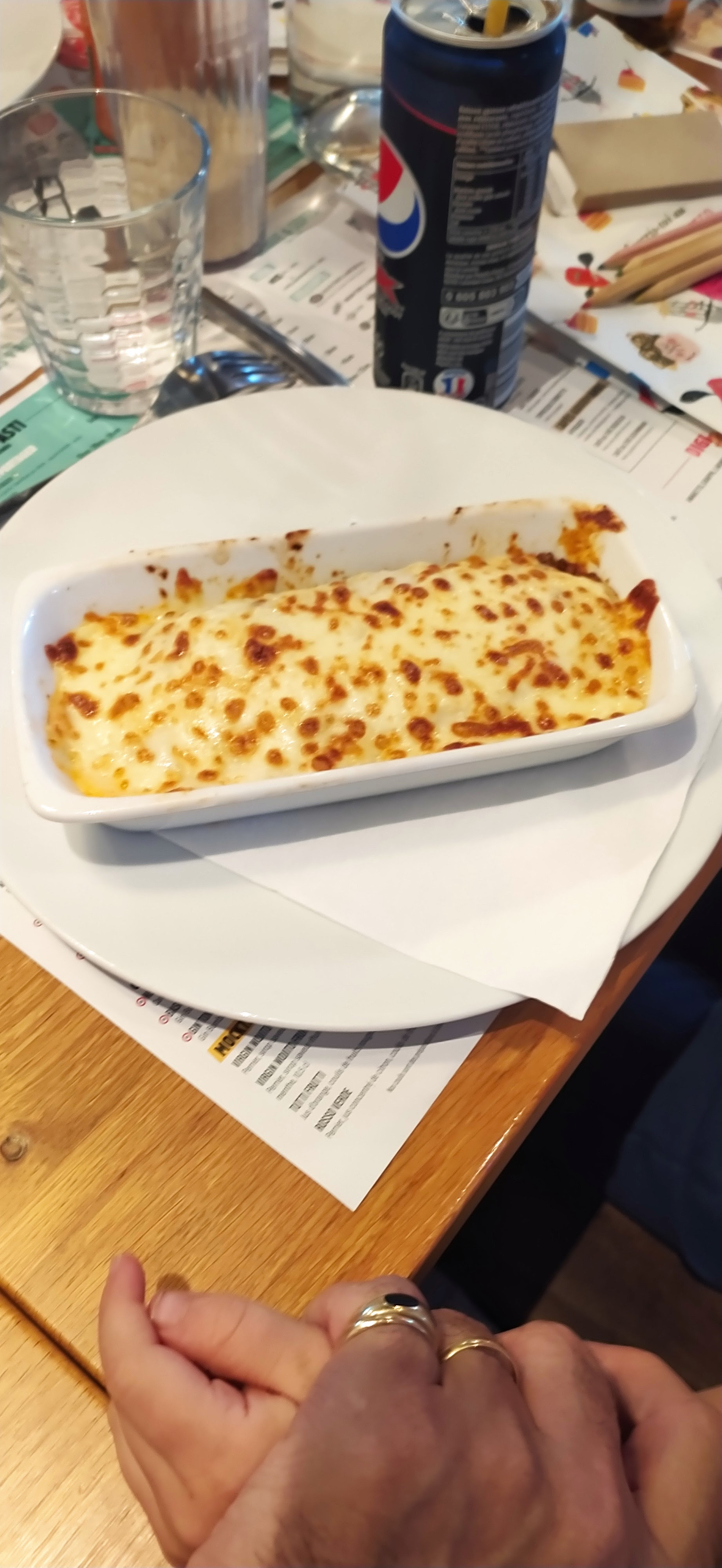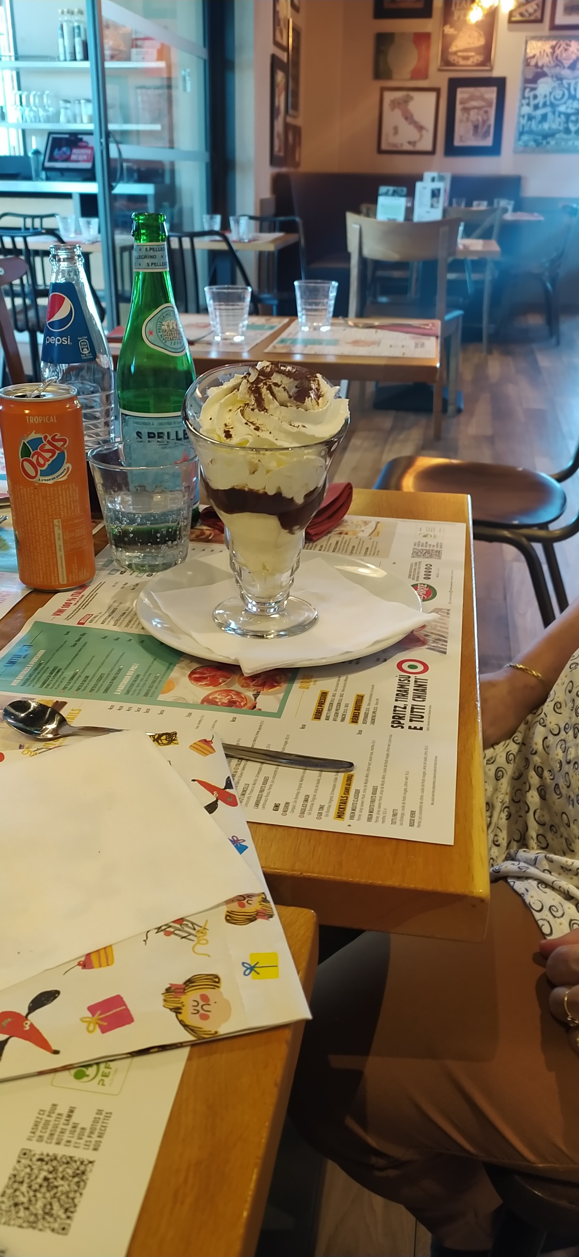 endroit propre, personnel sympa, mes enfants veulent revenir, on peut trouver sur la carte : pizza😉 pâtes, gratin, croque (photo), dessert en photo : crêpe Nutella/chantilly, tiramisu, ciacobanana (délicieux)