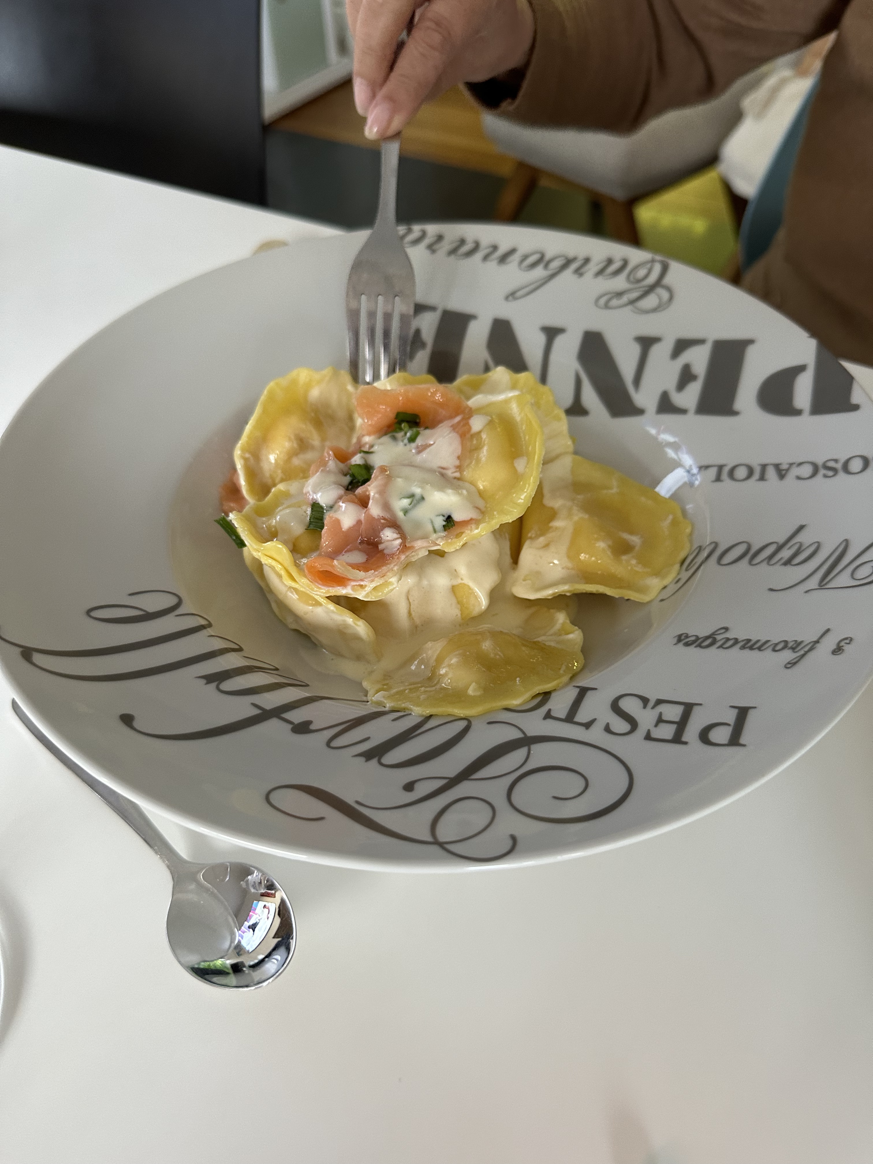 Vente à emporter j ai essayé les pâtes farcies au saumon fumé crème citronnée top👍👍 très fin horaire respecté 👌👌