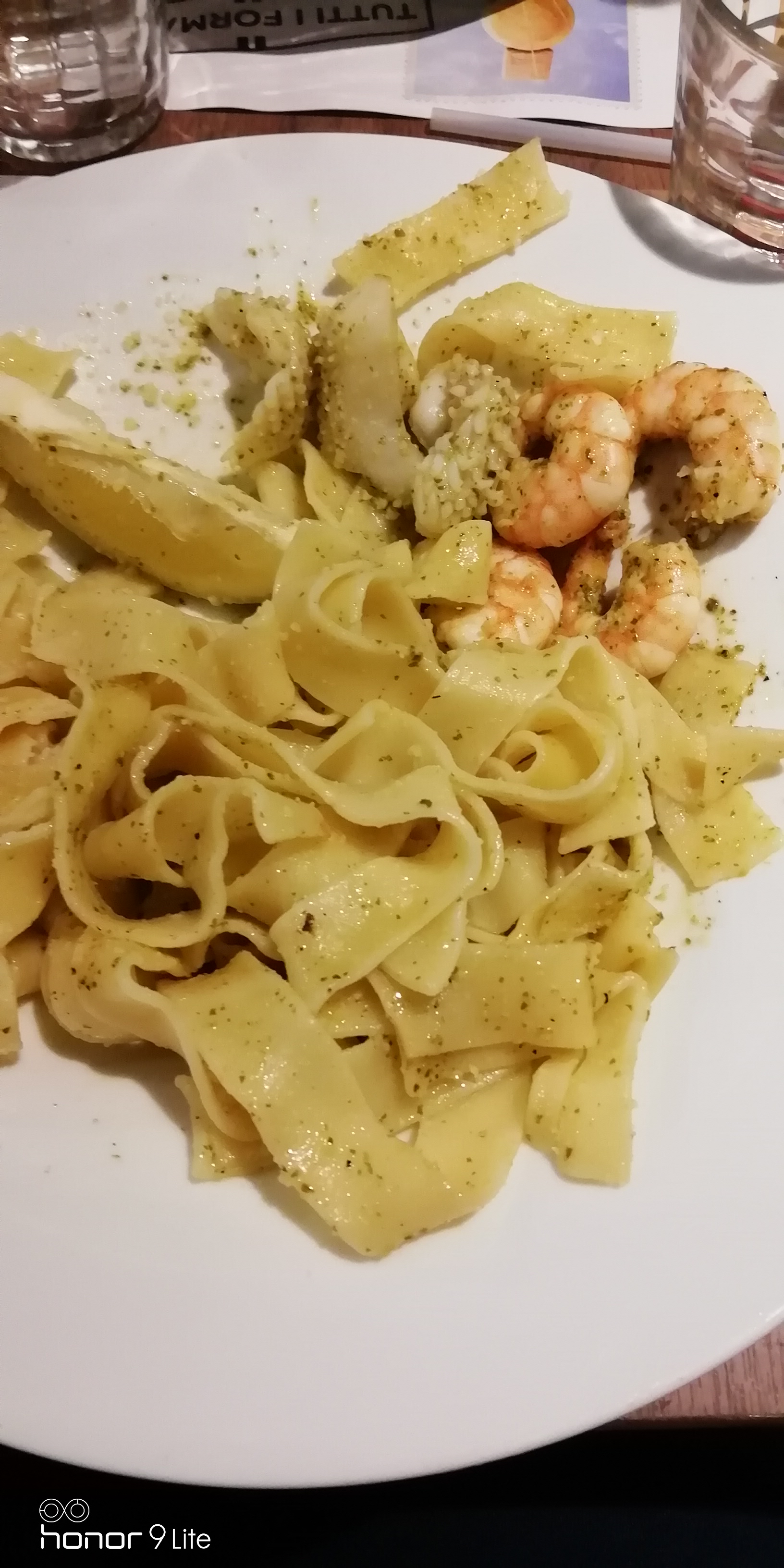 Pappaderle del mare, 15,90 euros l'assiette, 4 crevettes et 3 pauvres bouts de poulpe, l'ensemble servi alors qu'on venait juste d'avoir nos cocktails... Ça fait cher pour si peu... et mauvais timing !