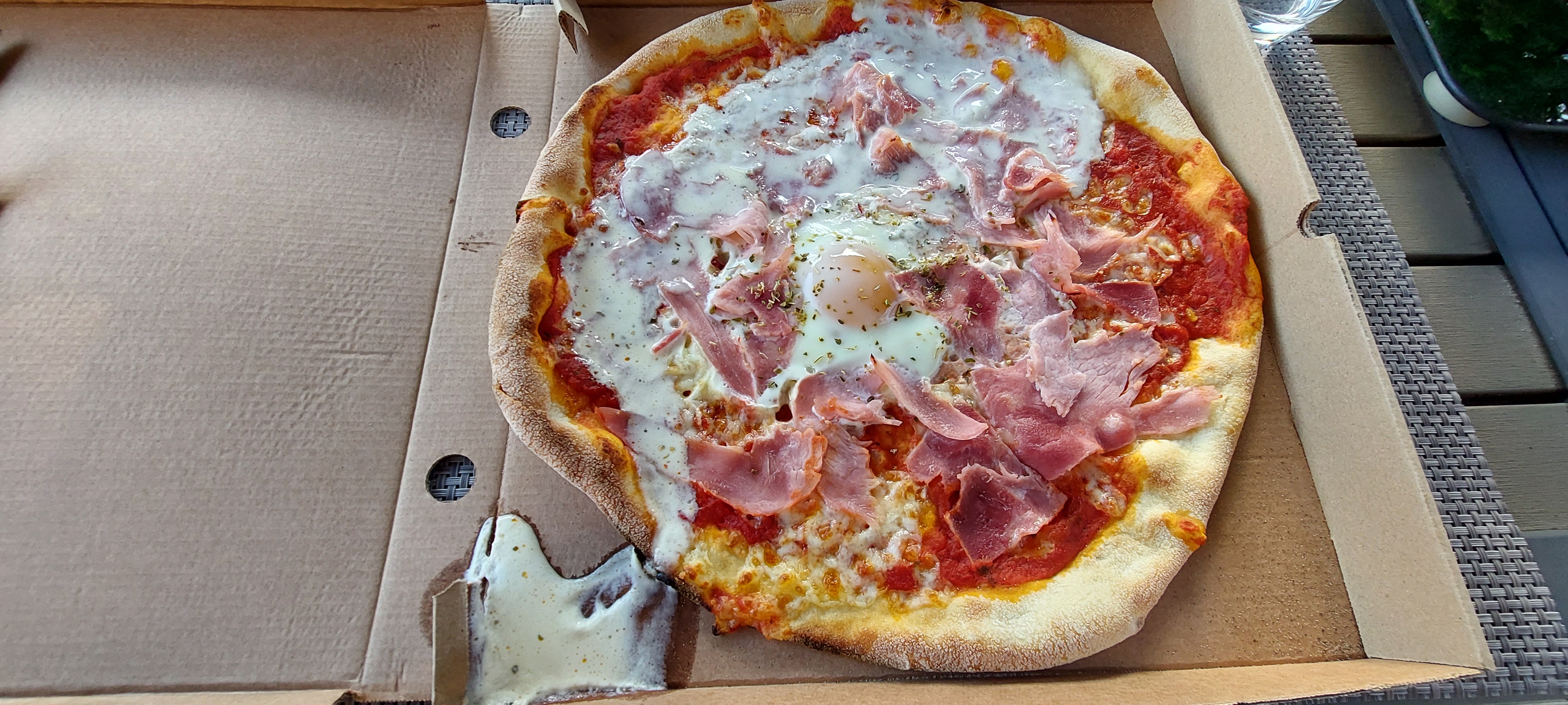 Nous avons passé commande ce soir de 3 pizzas à emporter. Il y avait plus de crème dans le carton que sur la pizza (et je ne parle pas du changement de recette de la creme ciboulette car cette dernière est inexistante), l oeuf n était pas coulant mais très cuit... Bref une mauvaise expérience de plus. Déjà que le changement de carte n était pas très appréciable mais là je peux dire que je ne suis pas prête d y revenir. Très très déçue