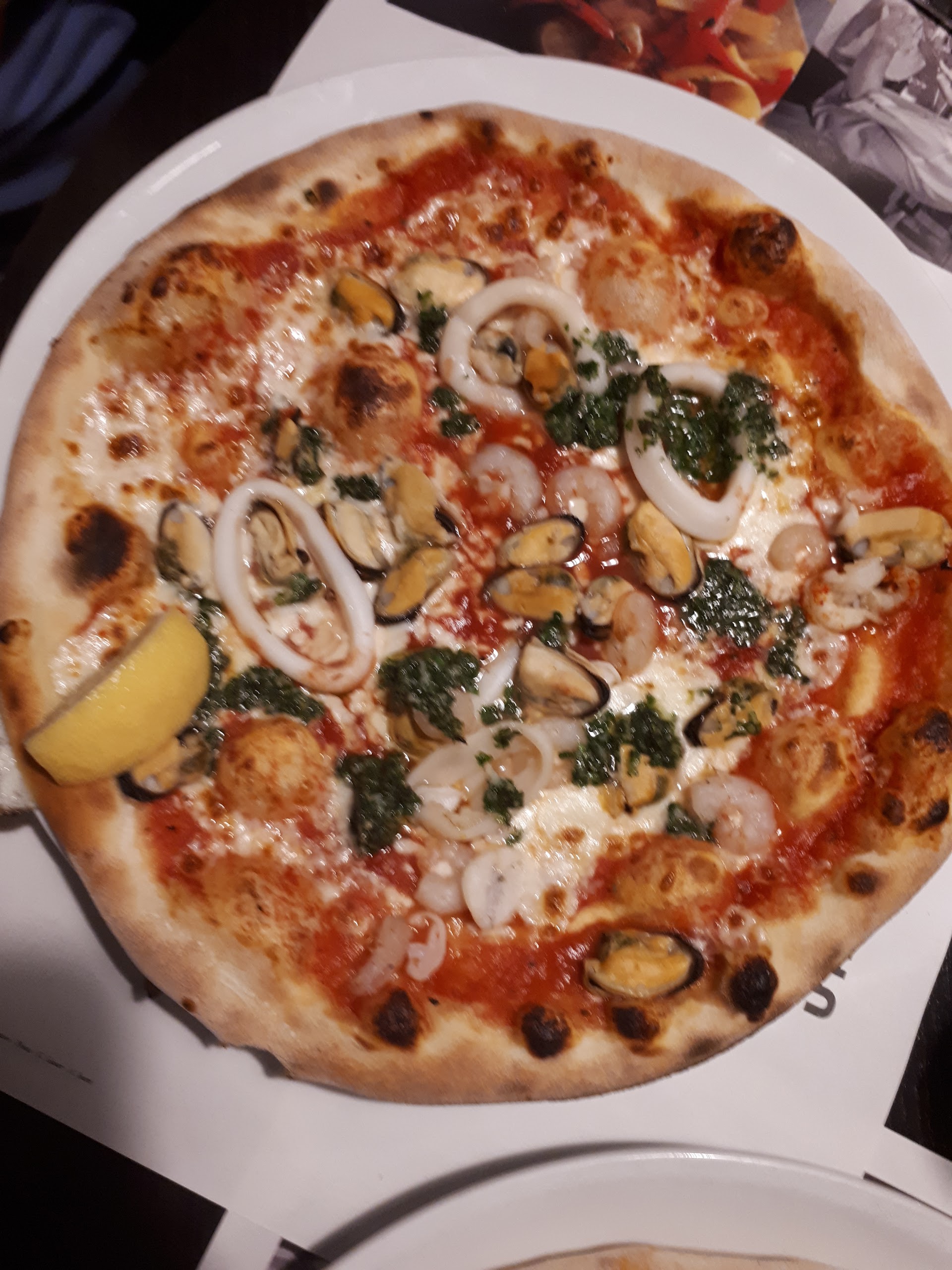 Pas beaucoup d attente , serveurs(euses) souriants et attentifs lieu agréable, ma pizza bonne aux fruits de mer. Bémol les moules avec les coquilles pas top car elles sont cassantes après le passage au four donc il faut faire attention il faudrait trouver une autre façon de les incorporer , peut-être sans les coquilles c'est moins jolies mais moins dangereux