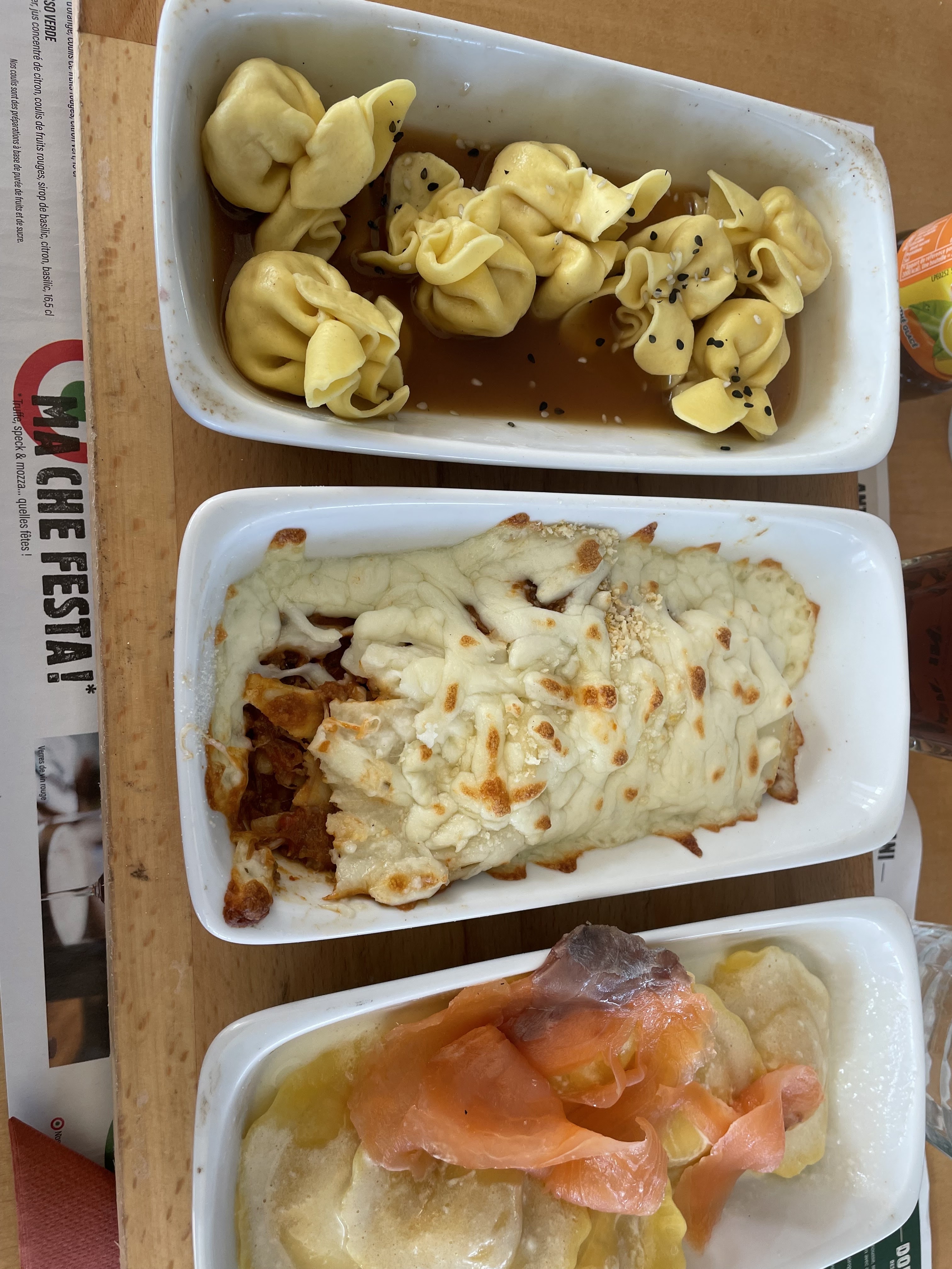 Lasagnes bolo du réchauffé et la salade lamentable cuite et recuite j'ais du avoir le fond du paquet réclamation faite au serveur on me redonne mon assiette à part du rajout de salade toujours la salade immangeable et la sauce inexistante à deconseiller Geste du serveur dessert offert mais en attendant très déçue je n'y mettrais plus jamais les pieds
