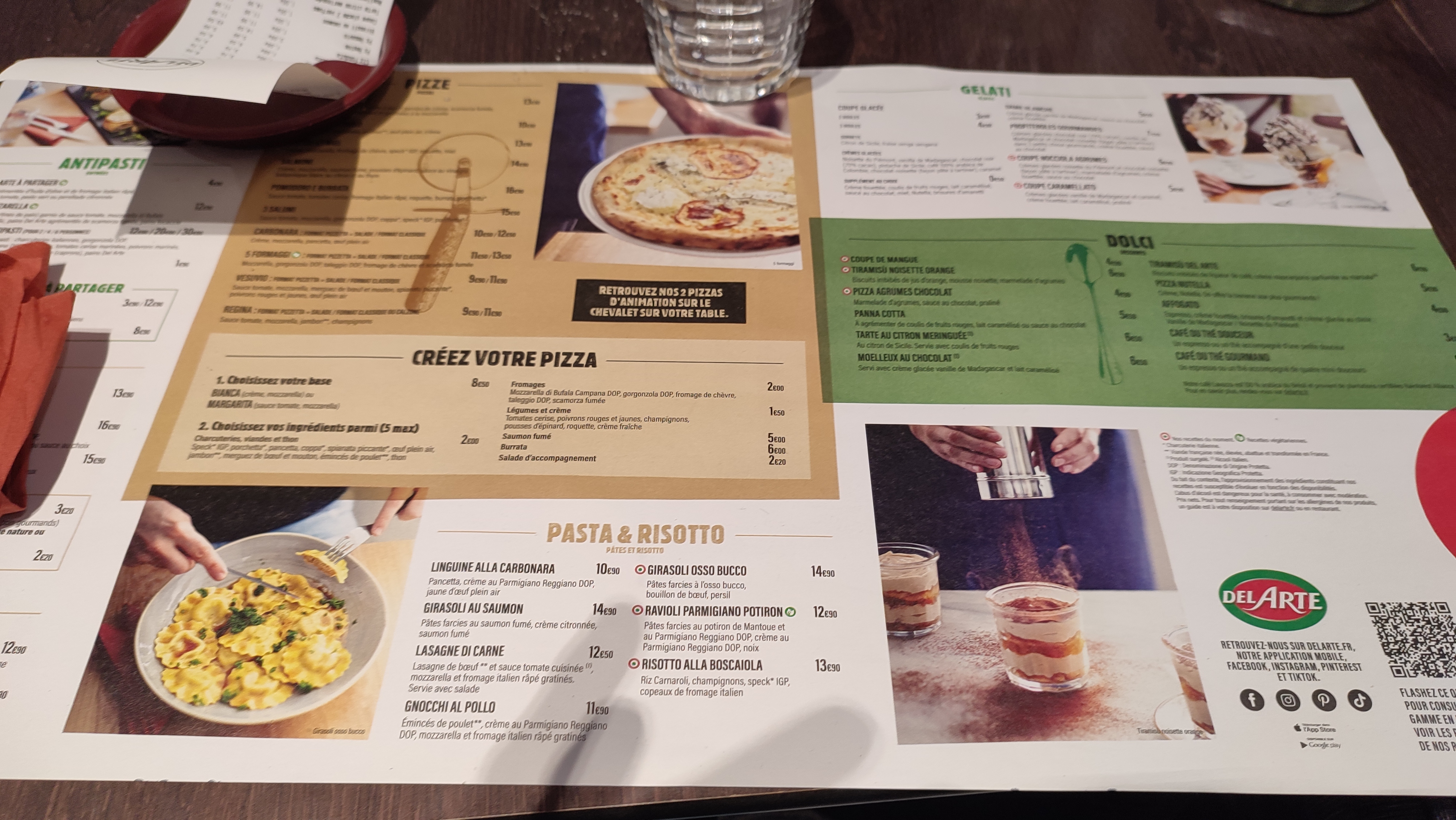 De base j’adore ce restaurant j’y allais même très souvent. Visité en Novembre nous étions 5, trois plats sur 5 avait une erreur. Nous avions eu une réduction sur l’addition. Il y a trois jours je viens avec des amis à 10, serveuse exécrable, qui n’a pas l’air d’aimer son travail, qui nous interdit de prendre tel desserts alors que son collègue par la suite nous dit oui (adorable lui d’ailleurs). De plus 15 minutes d’attente pour 2 de mes amis qui ont eu une erreur sur leurs pizzas. C’est dommage.. Fini pour moi Del Arte du Havre.