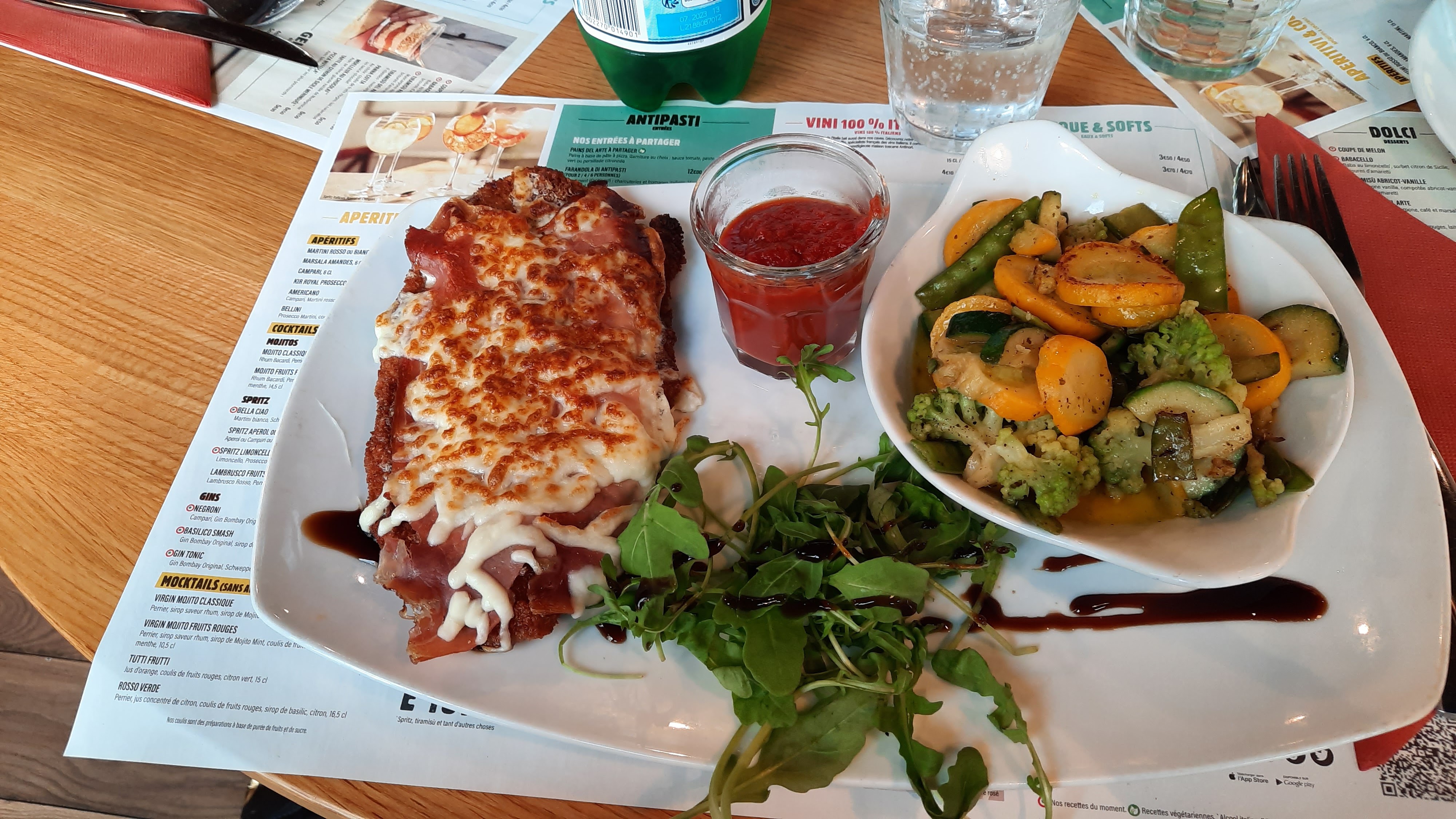 Très bon déjeuner en Italie, bon dépaysement au niveau des goûts. Personnel très aimable et rigolote