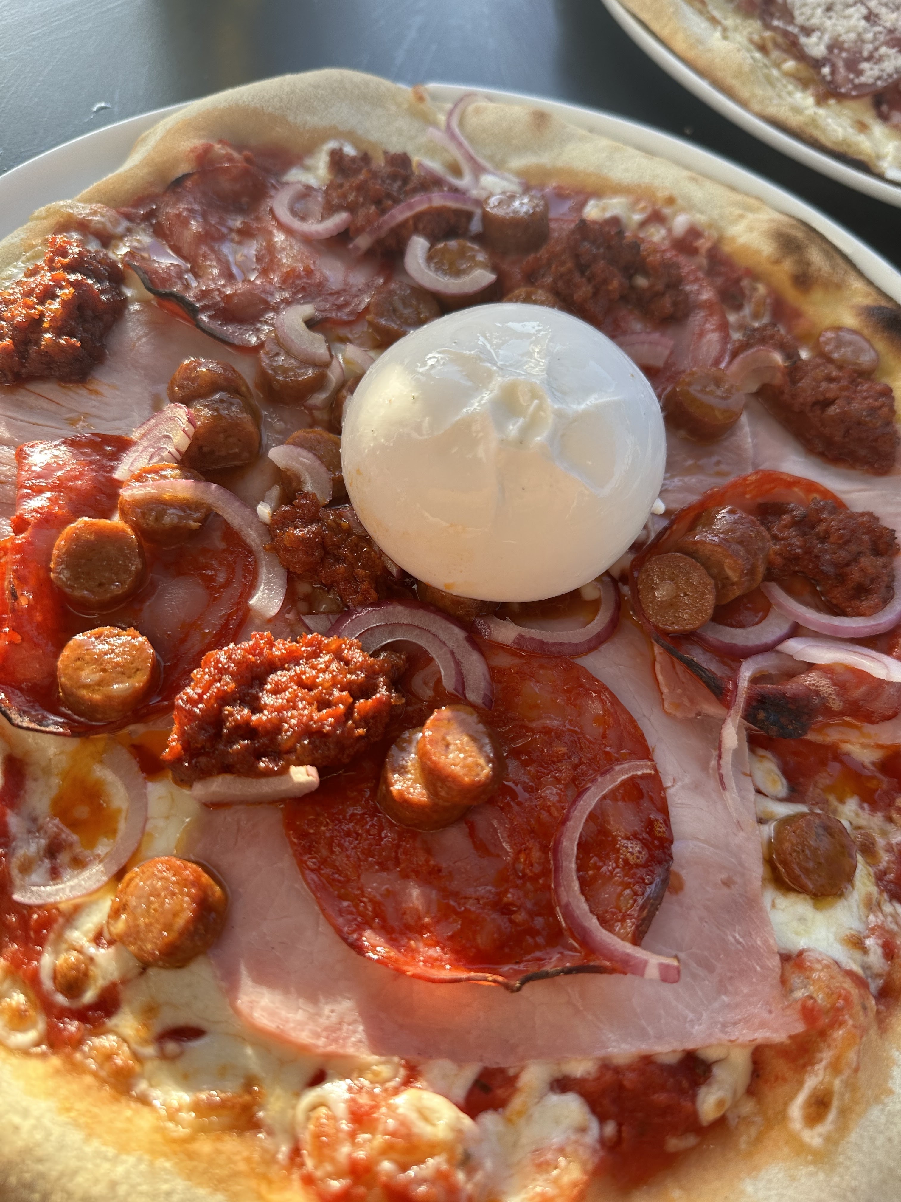 3 pizzas commandées ce midi: la vesuvio, la carbonara et la spéciale pizzaiolo.... La pâte est tout simplement divine, fine (ce ne sont pas des pizzas américaine 😂) très bonne, la garniture qui a du goût... Un service au top, de la qualité... Et on les finira ce soir car ce sont de belles pizzas pour une personne. Excellent rapport qualité-prix. Nous reviendrons. Hâte de pouvoir déguster sur place car le cadre est très joli.