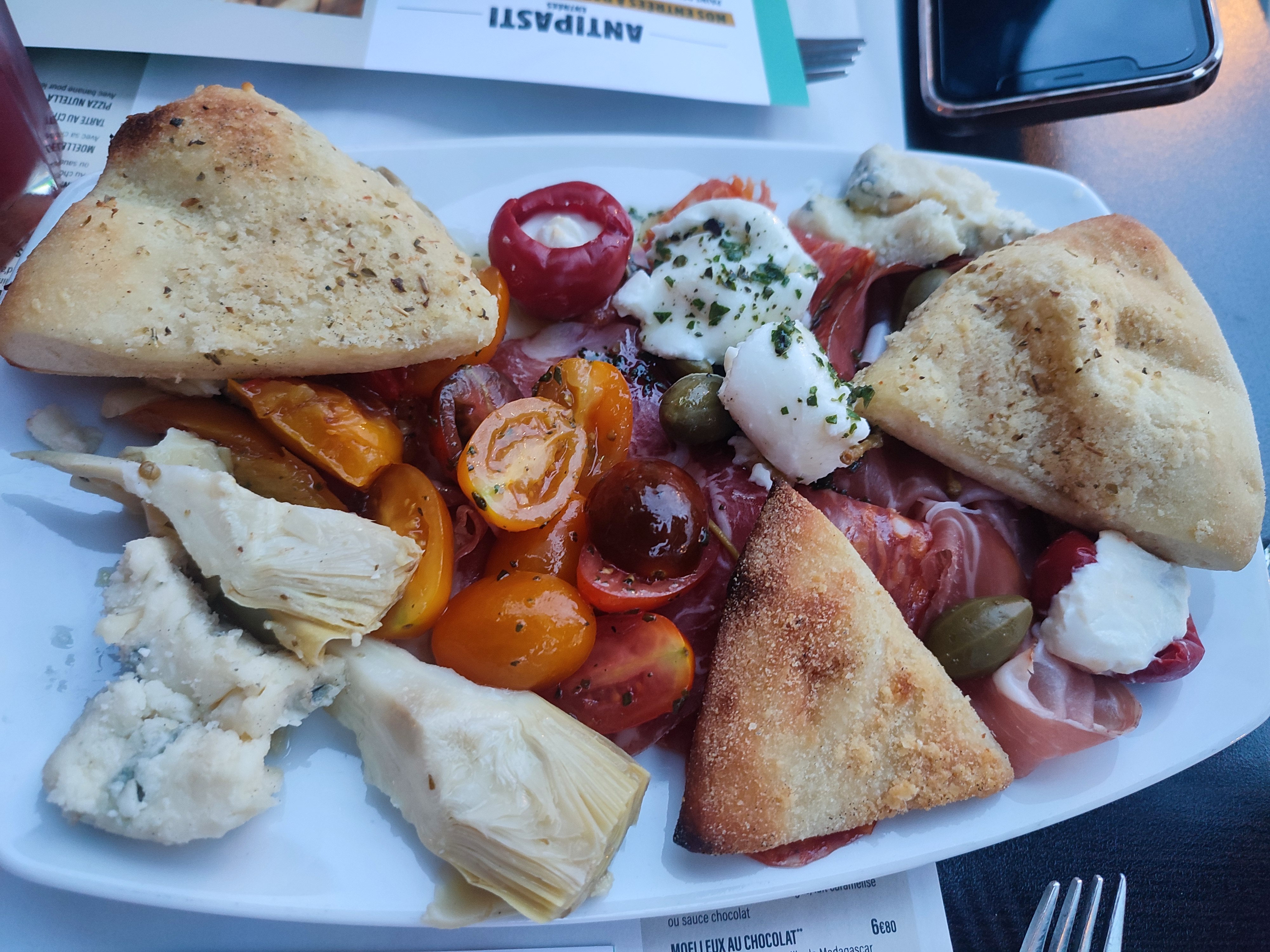 Bien le bonjour, De l'apéritif au dîner un délice ( juste quand on commande un plateau de charcuterie si on pouvait mettre plus de pain 3 petite tranche pour une planche entière de charcuterie c léger, on ressent la crise 😉) Un service avec le sourire et aimable rigole même au blague nul merci hehe Parcontre le désert wouah un tiramisu avec une éponge le biscuit pas top du tout heureusement qu'il y a du Nutella ! Et un restaurant italien sans cappuccino euh... Bizarre l'ambiance ! Même a la boucherie il y a n'a un régale au passage hehe